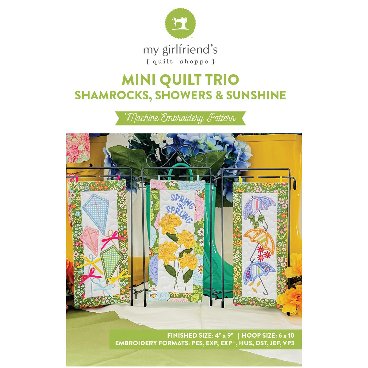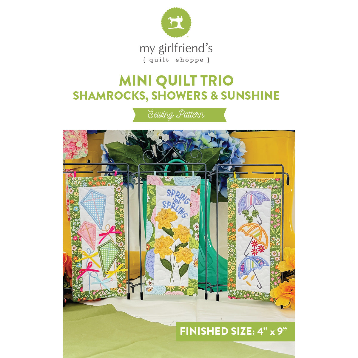 - Exclusive MGQS mini quilt trio featuring Shamrock, Sunshine, and Showers designs