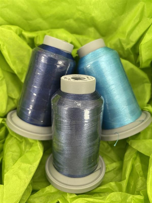 Includes three Glide 40wt trilobal polyester threads in Chill (30298), Cobalt (30647), and Admiral (30654)