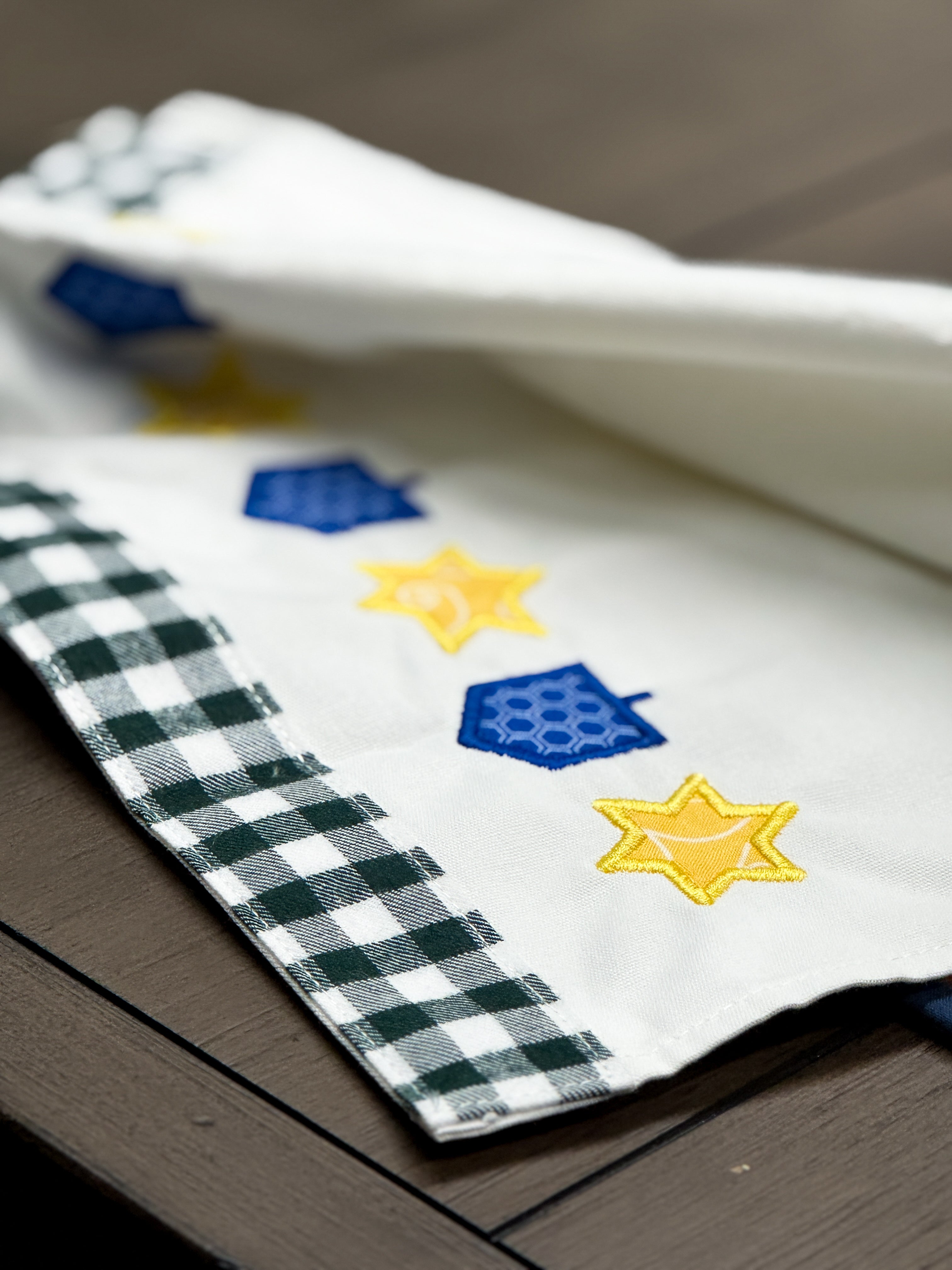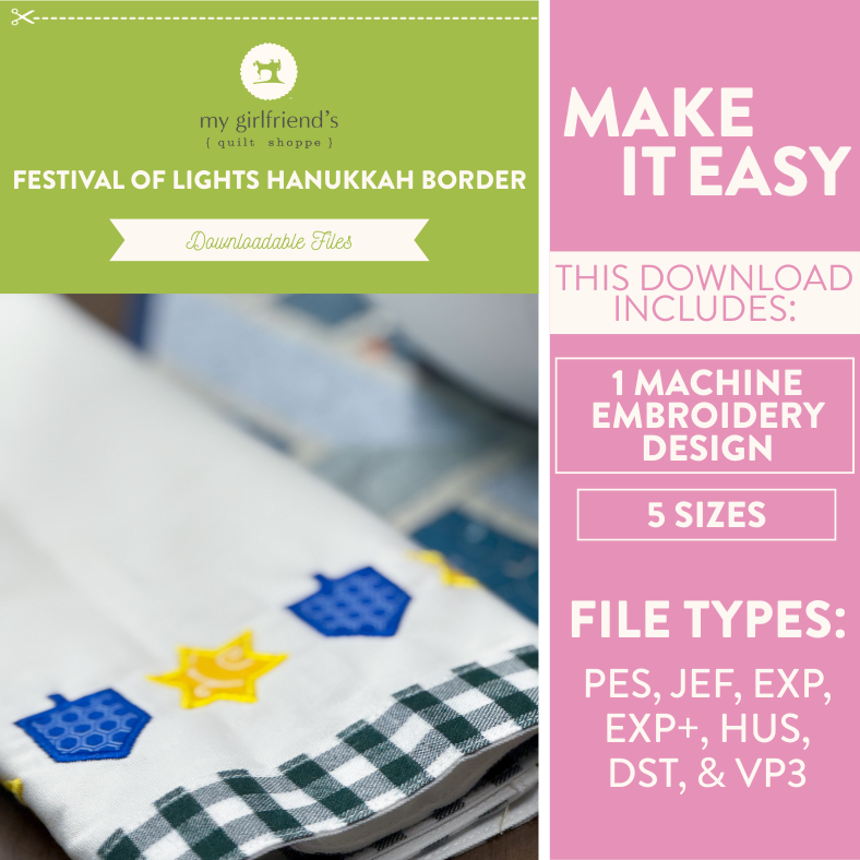 Exclusive Hanukkah-themed border embroidery design by My Girlfriend’s Quilt Shoppe