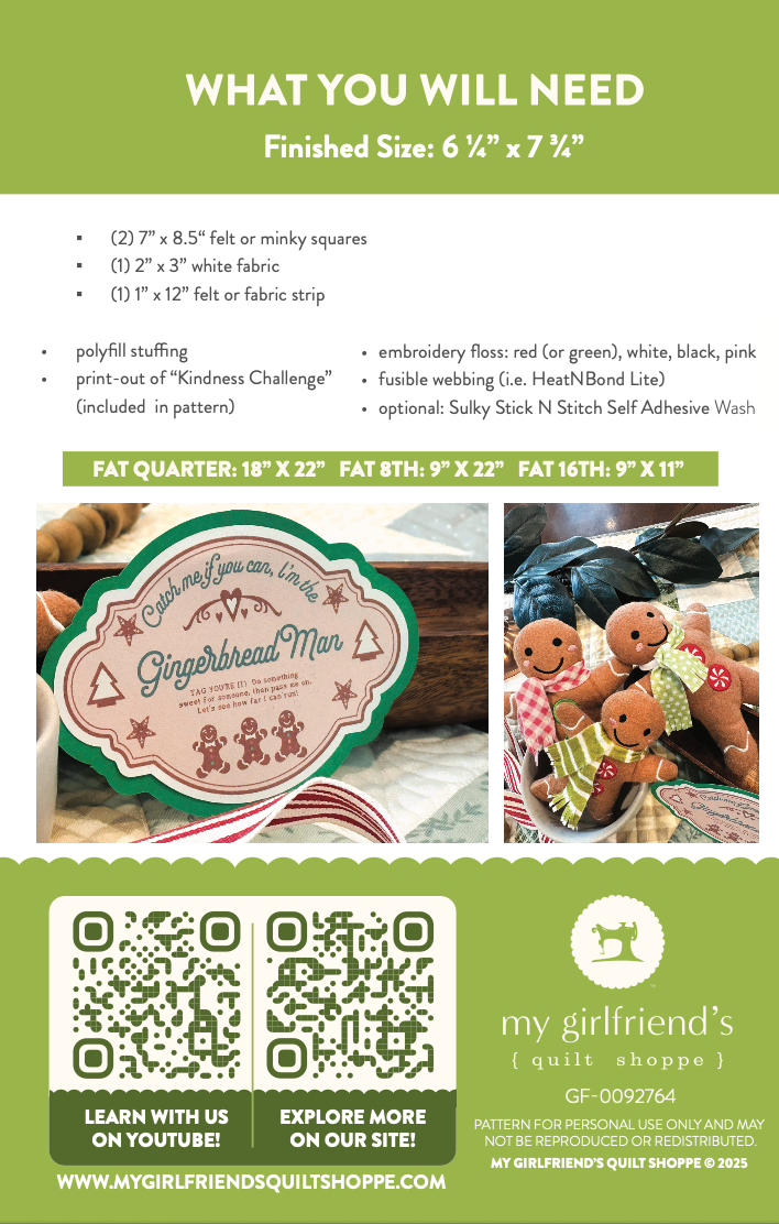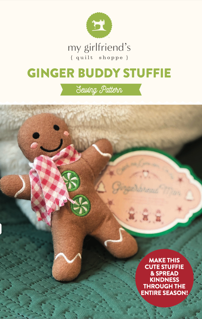 Meet your new festive friend—the Ginger Buddy Sewing Pattern, an exclusive design from My Girlfriend’s Quilt Shoppe! This adorable gingerbread softie is perfect for holiday decorating, gifting, or stitching up for little hands to love. With simple construction and charming details, Ginger Buddy comes to life quickly, making this pattern a delightful seasonal project for confident beginners and experienced sewists alike.