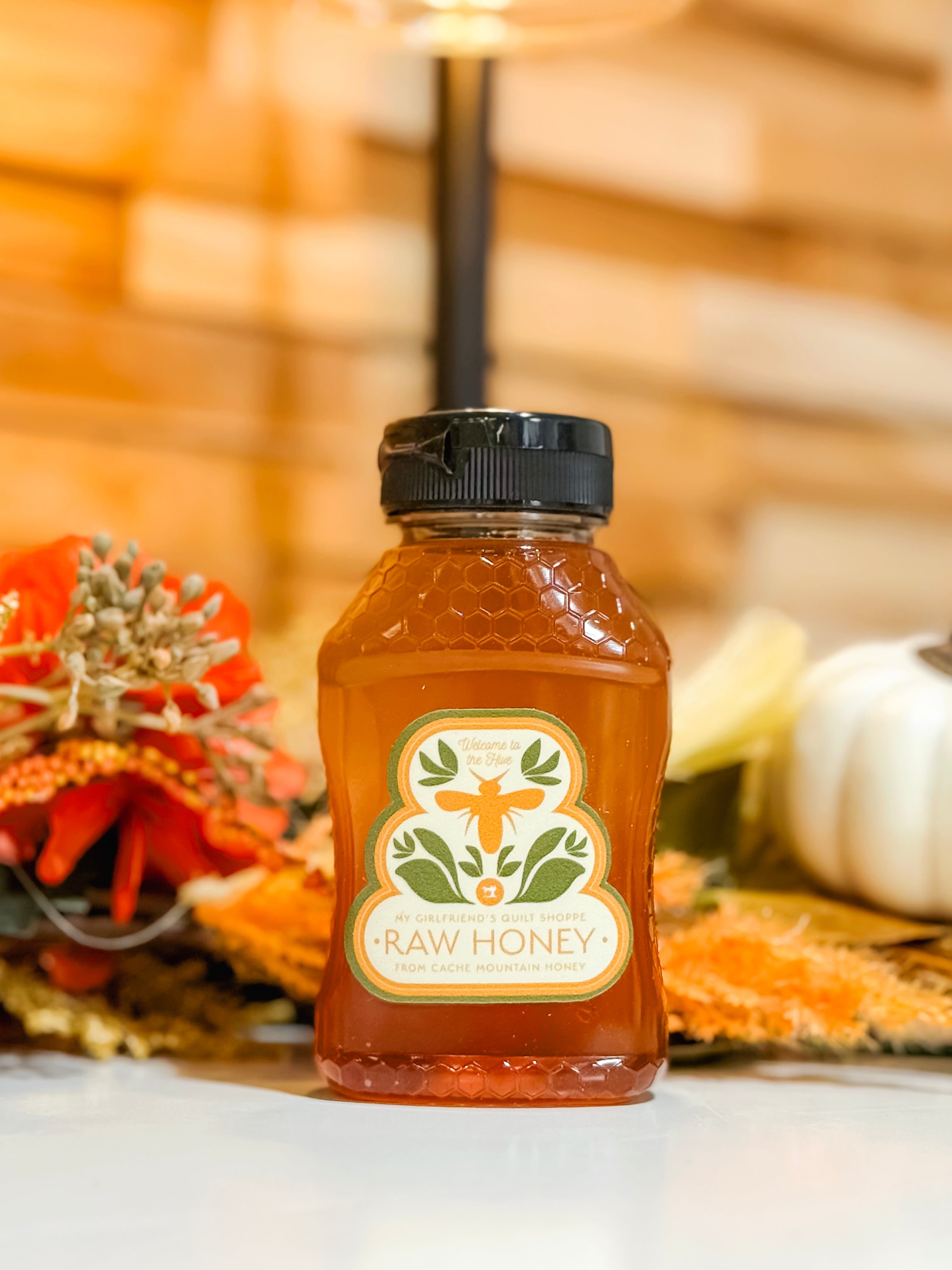 Description: Sweeten up your stash and your snacks with MGQS Exclusive Honey!  Straight from the hive to your table, this golden goodness is the perfect pairing for tea, toast, or bribing your quilting friends into helping you bind that quilt.  Drizzle it, gift it, or hoard it--because nothing says sew sweet like honey made just for our busy bees.