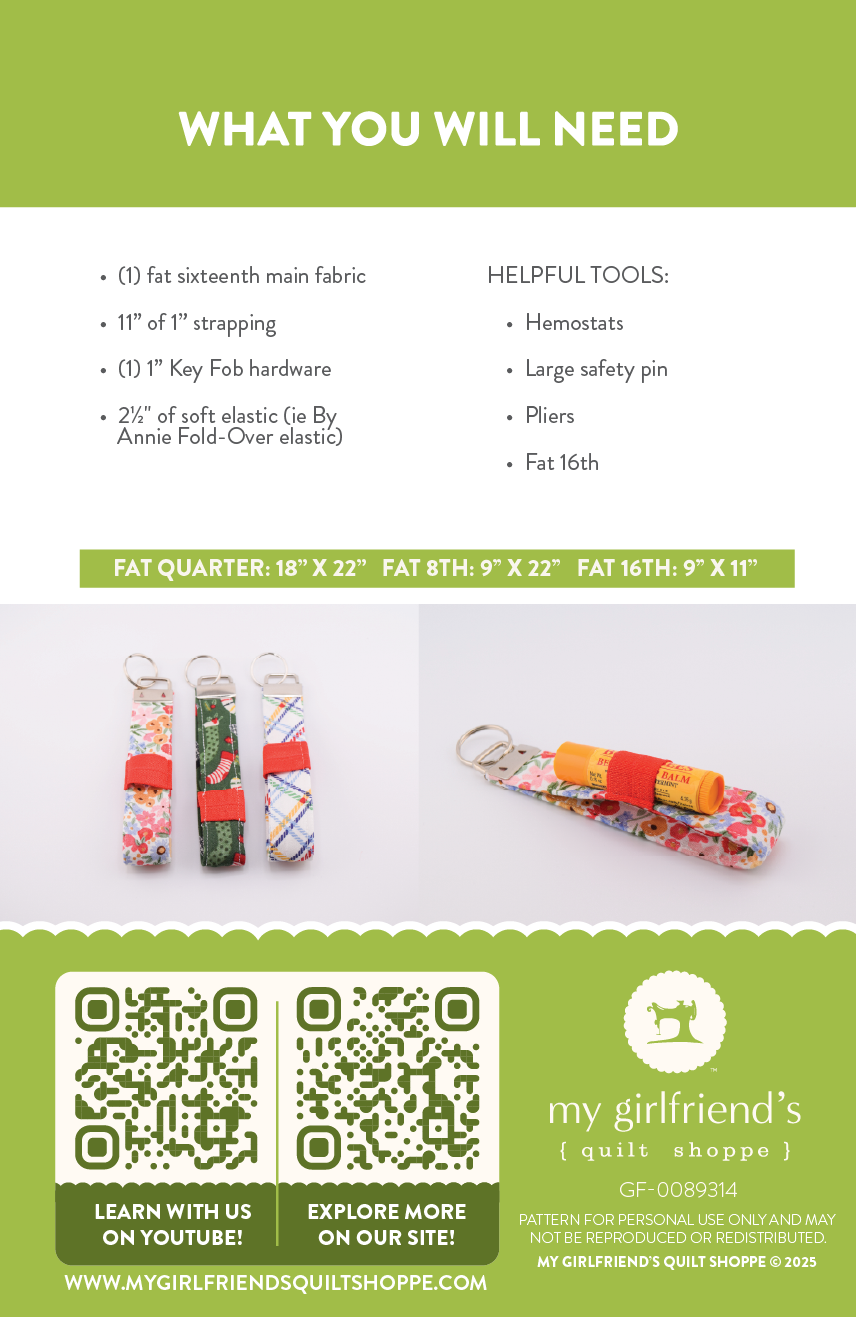 Stay organized in style with the Key Fob with Pockets Pattern, an exclusive design from My Girlfriend’s Quilt Shoppe! This clever little project features a secure fob strap and built-in pockets perfect for holding lip balm, earbuds, loyalty cards, sewing notions, and more. It’s a fun scrap-friendly sew and makes the perfect fast gift for teens, friends, teachers, and retreat buddies.