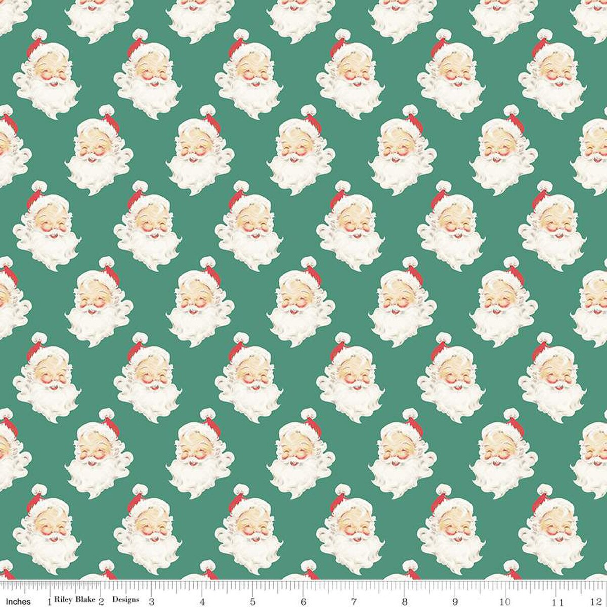 Merry Little Christmas Santa Heads- Pine 1 Yd Cut