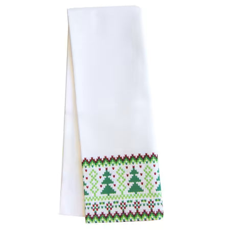 Solid White and Green Christmas Bottom Tea Towel