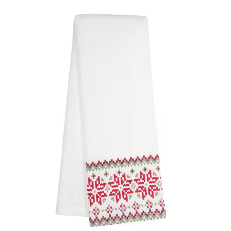 • 🎄 Solid white tea towel with red bottom stripe — timeless Christmas design