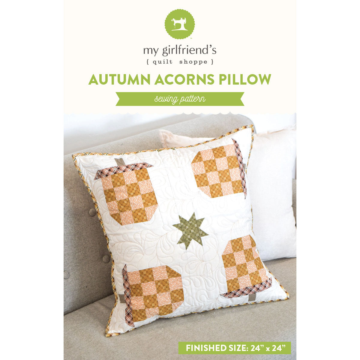 Celebrate the cozy beauty of fall with the Autumn Acorn 24" Pillow Pattern, an exclusive digital design from My Girlfriend’s Quilt Shoppe. This oversized pillow features a large appliquéd acorn paired with autumn-inspired patchwork for a warm and welcoming seasonal accent. Perfect for your couch, entryway, or sewing room, it’s a fun project that brings handmade charm to your home décor all season long.