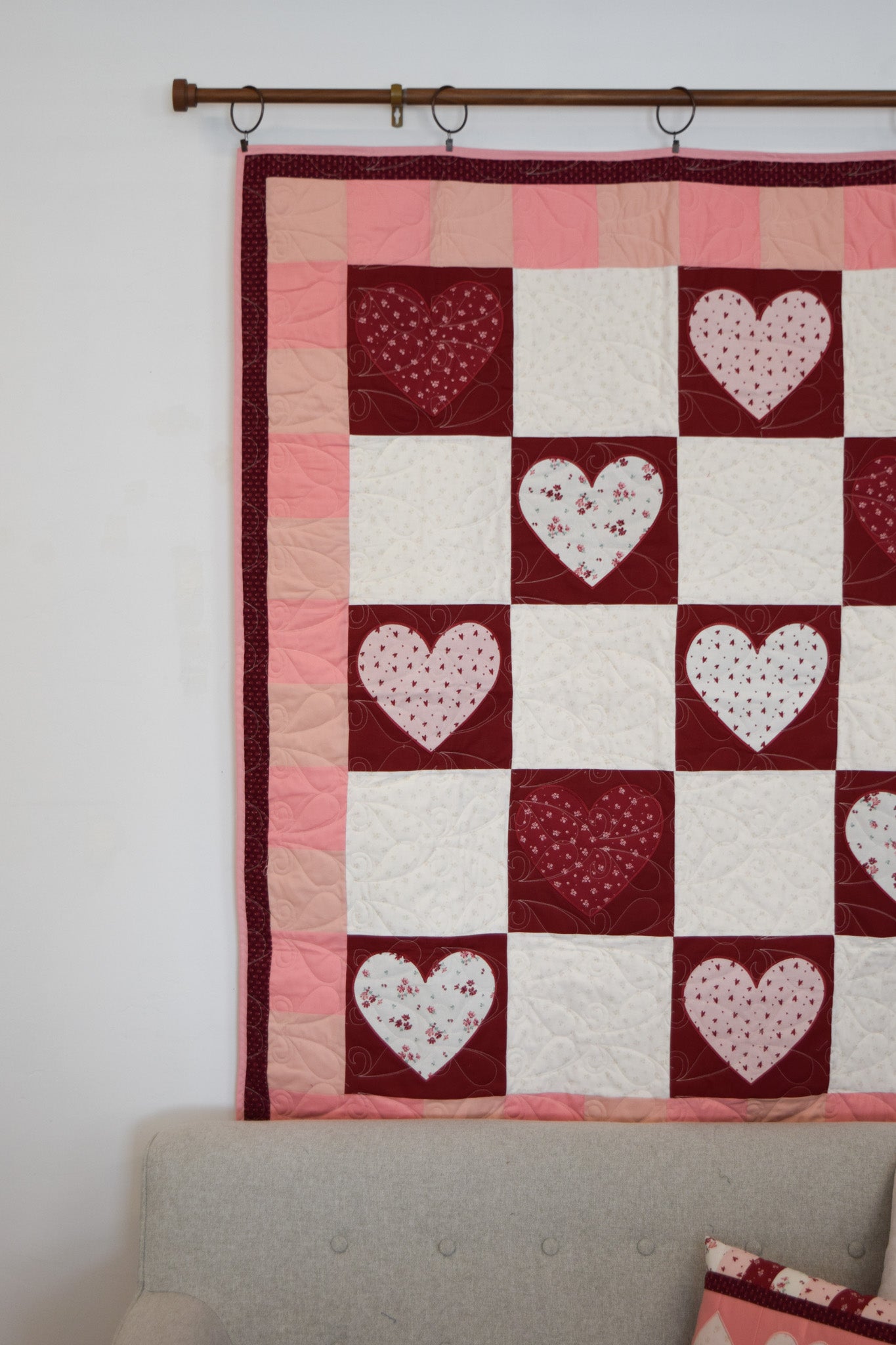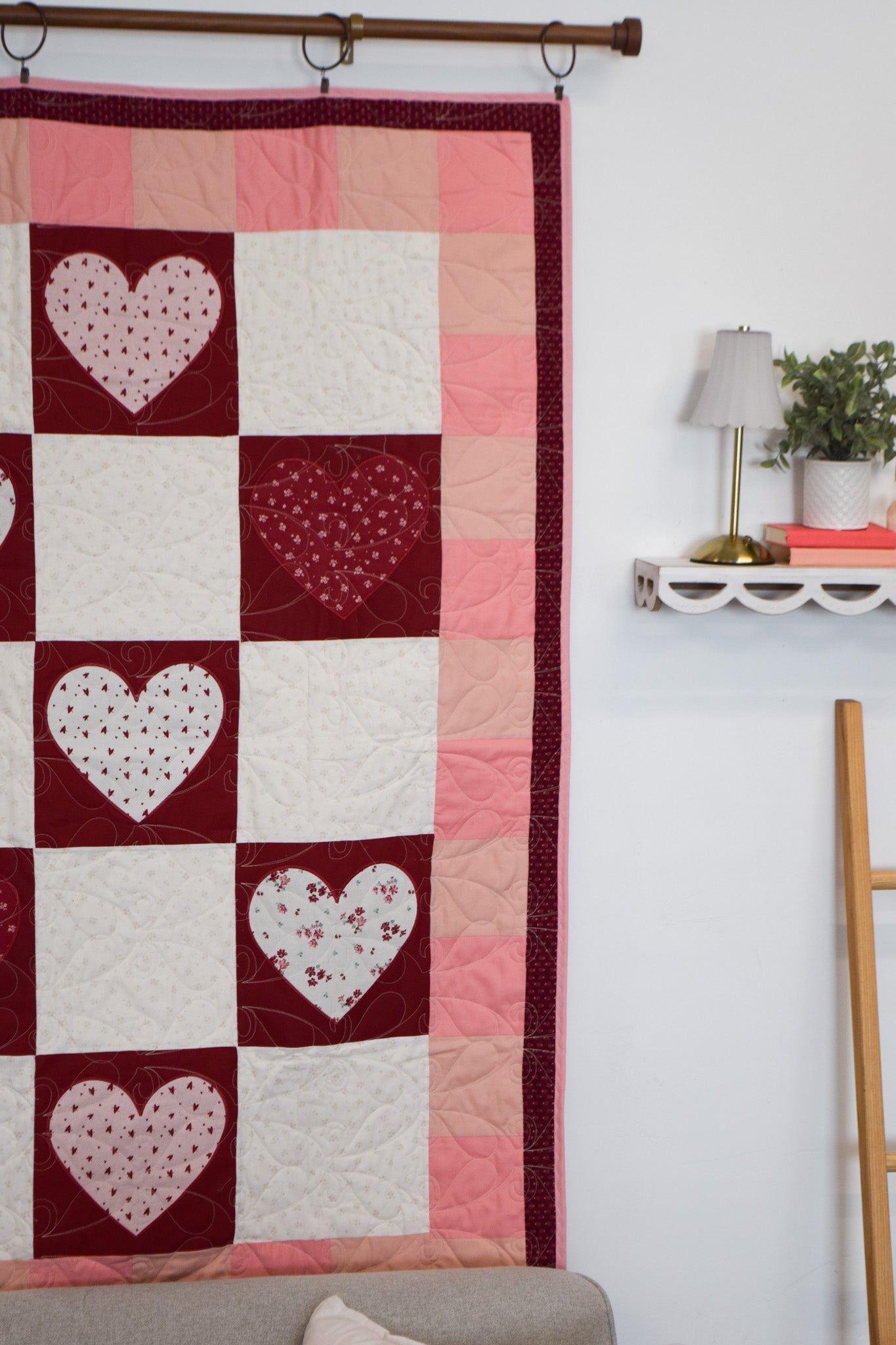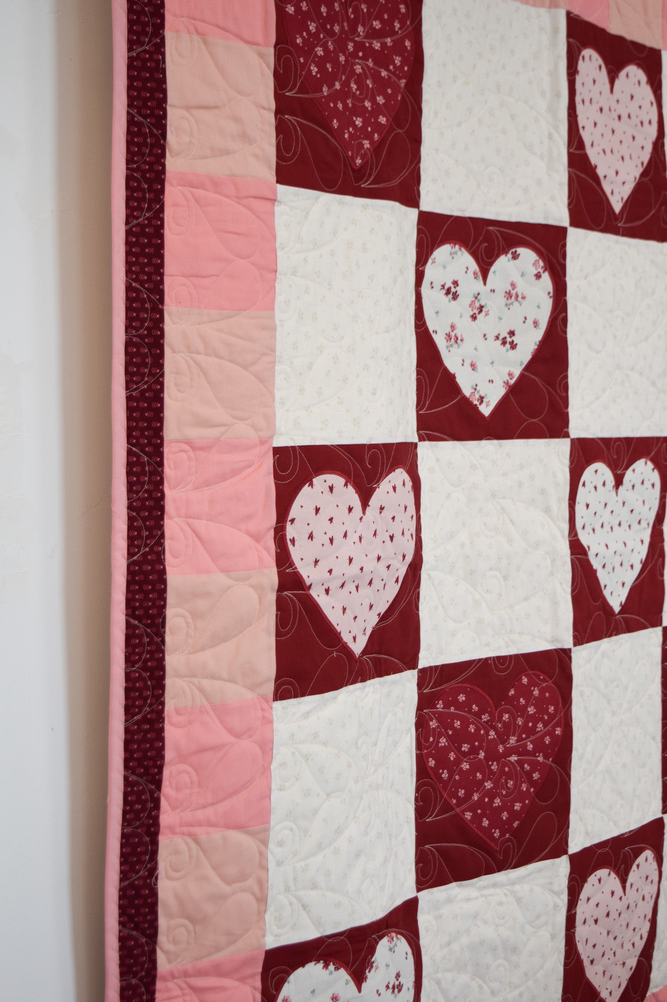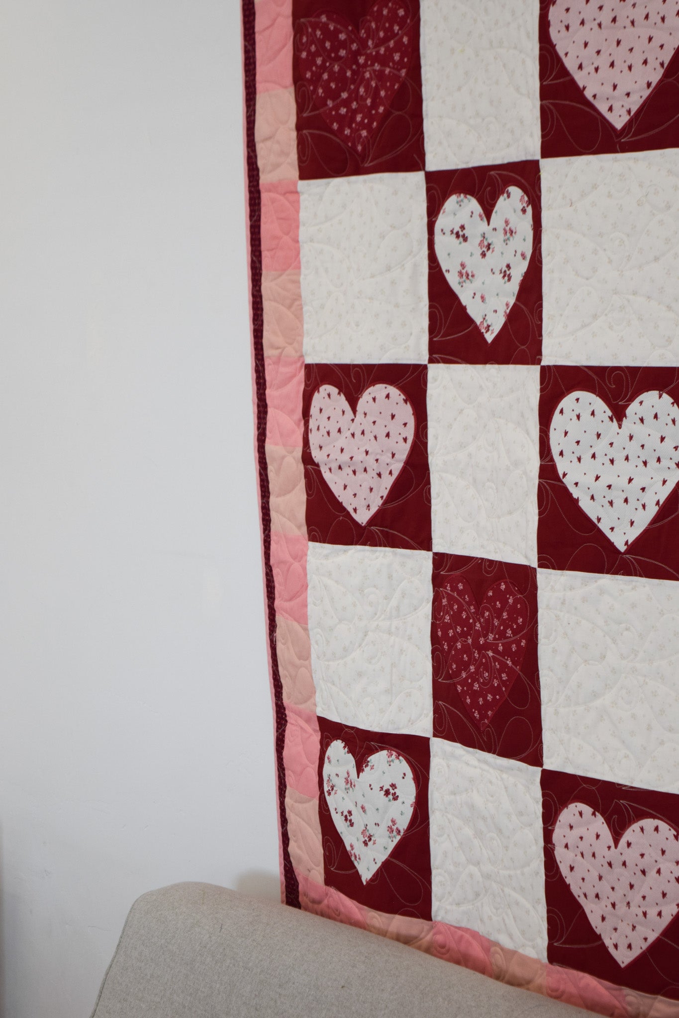 - Exclusive MGQS quilt design featuring heart-themed motifs