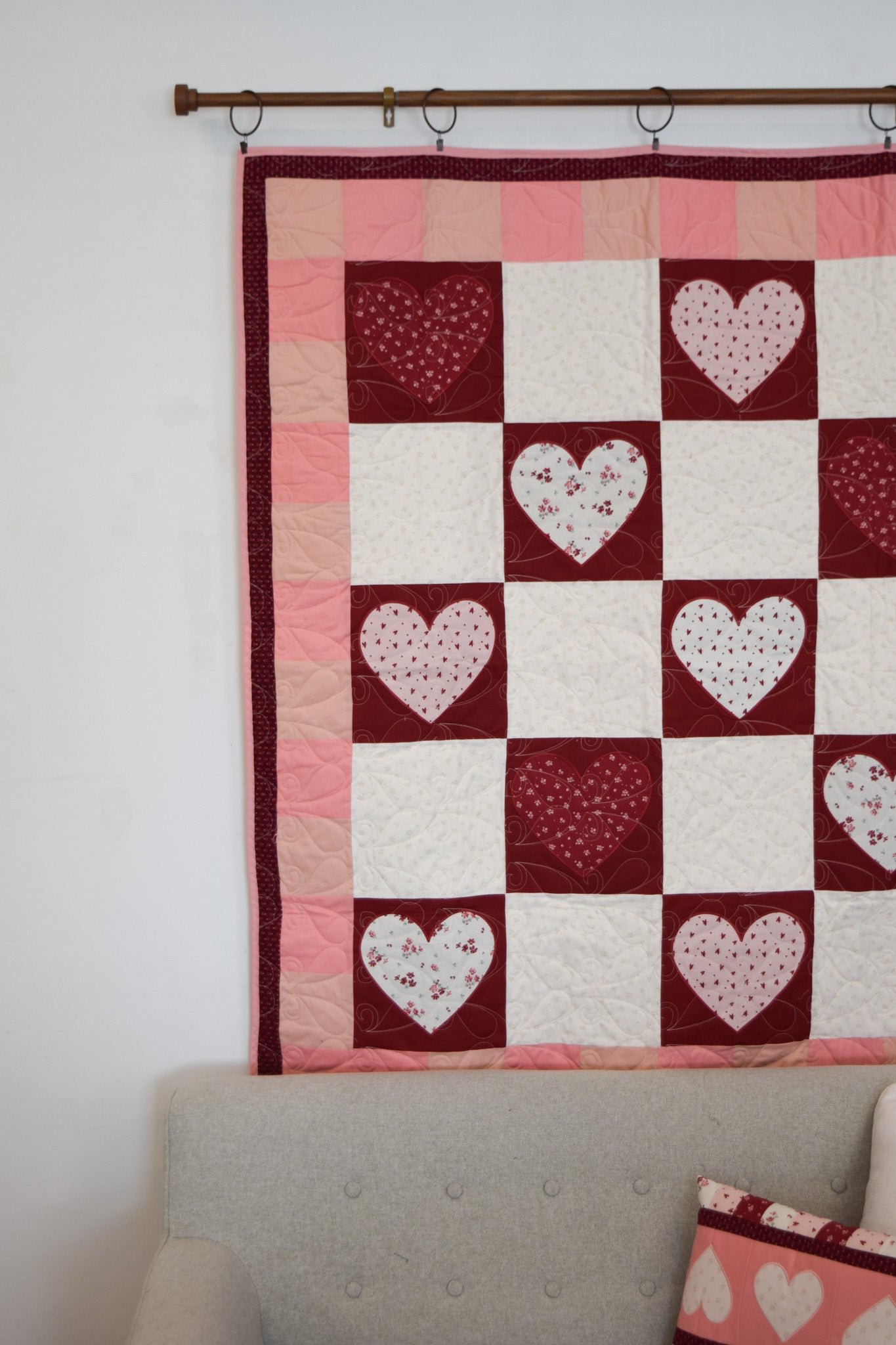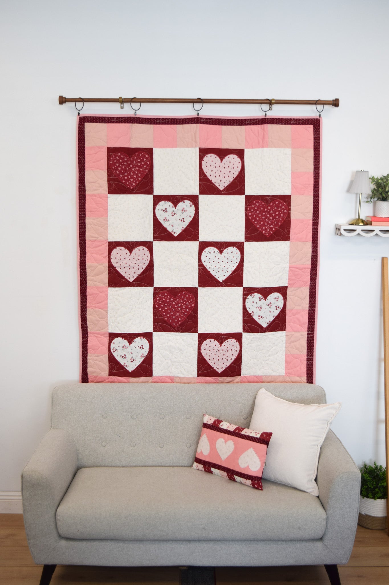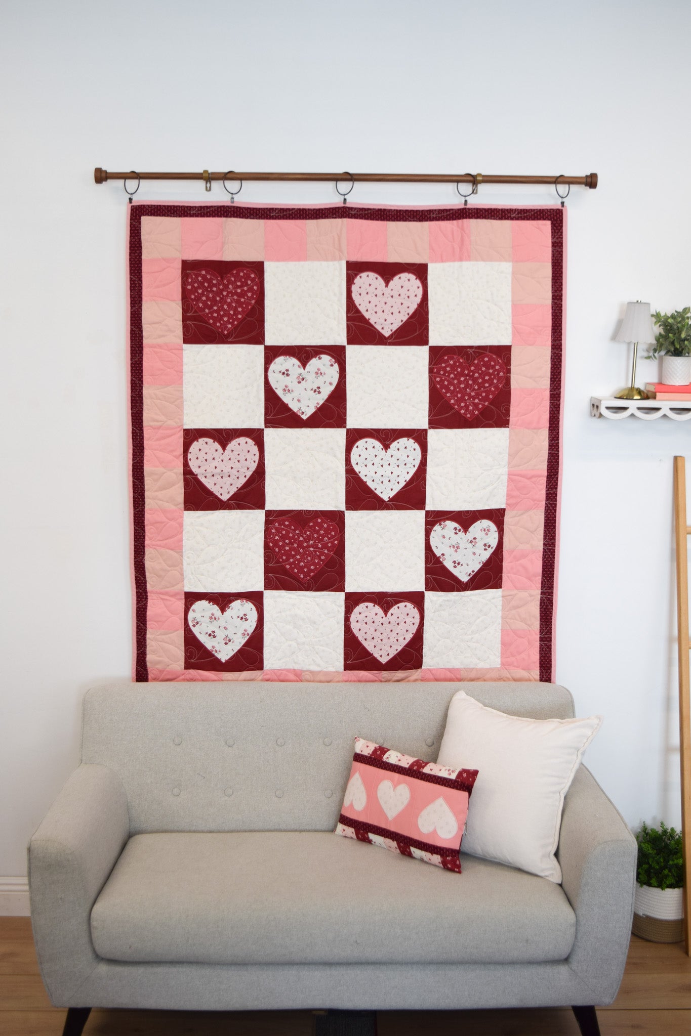 - Exclusive MGQS quilt design featuring heart-themed motifs