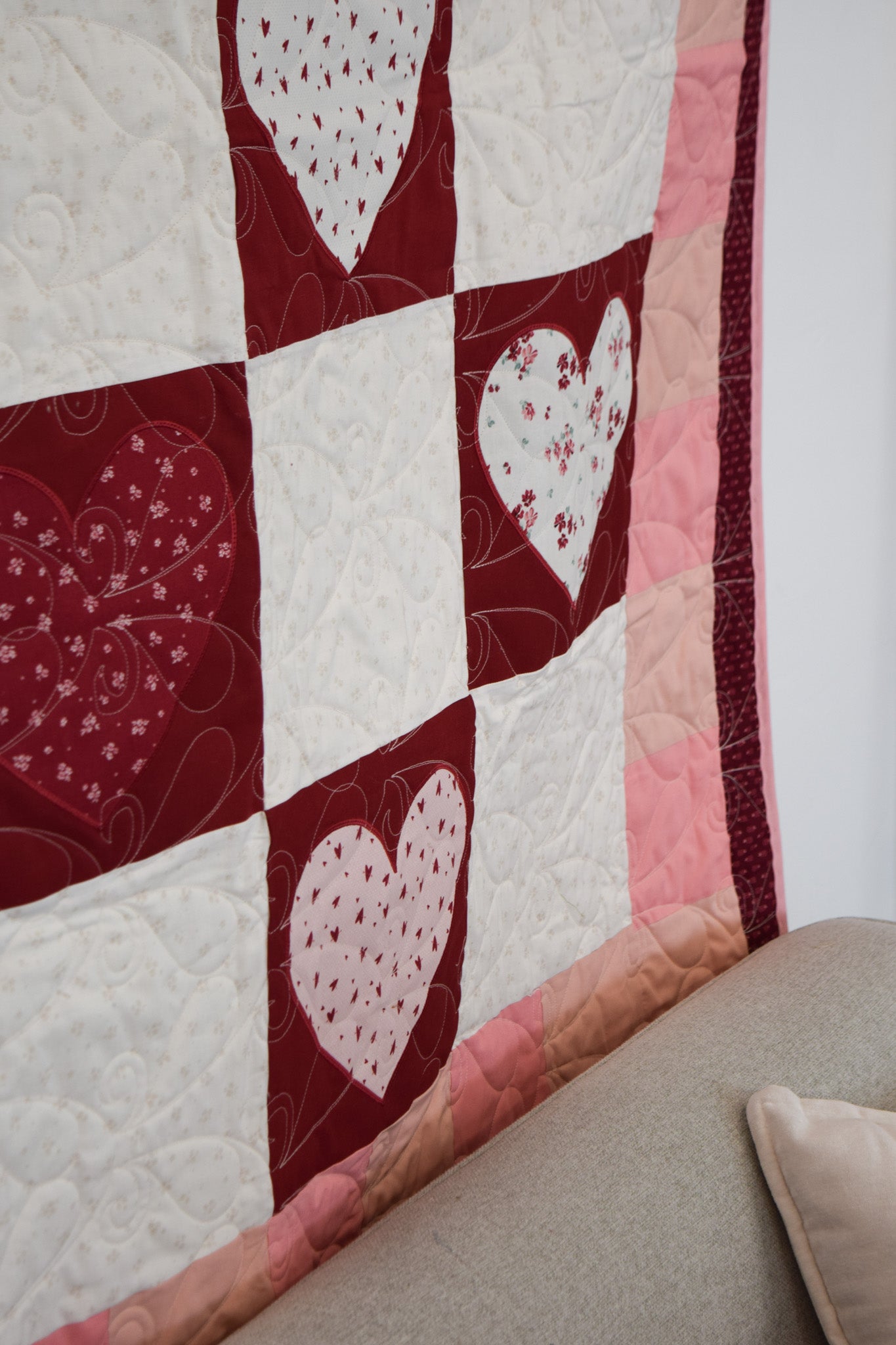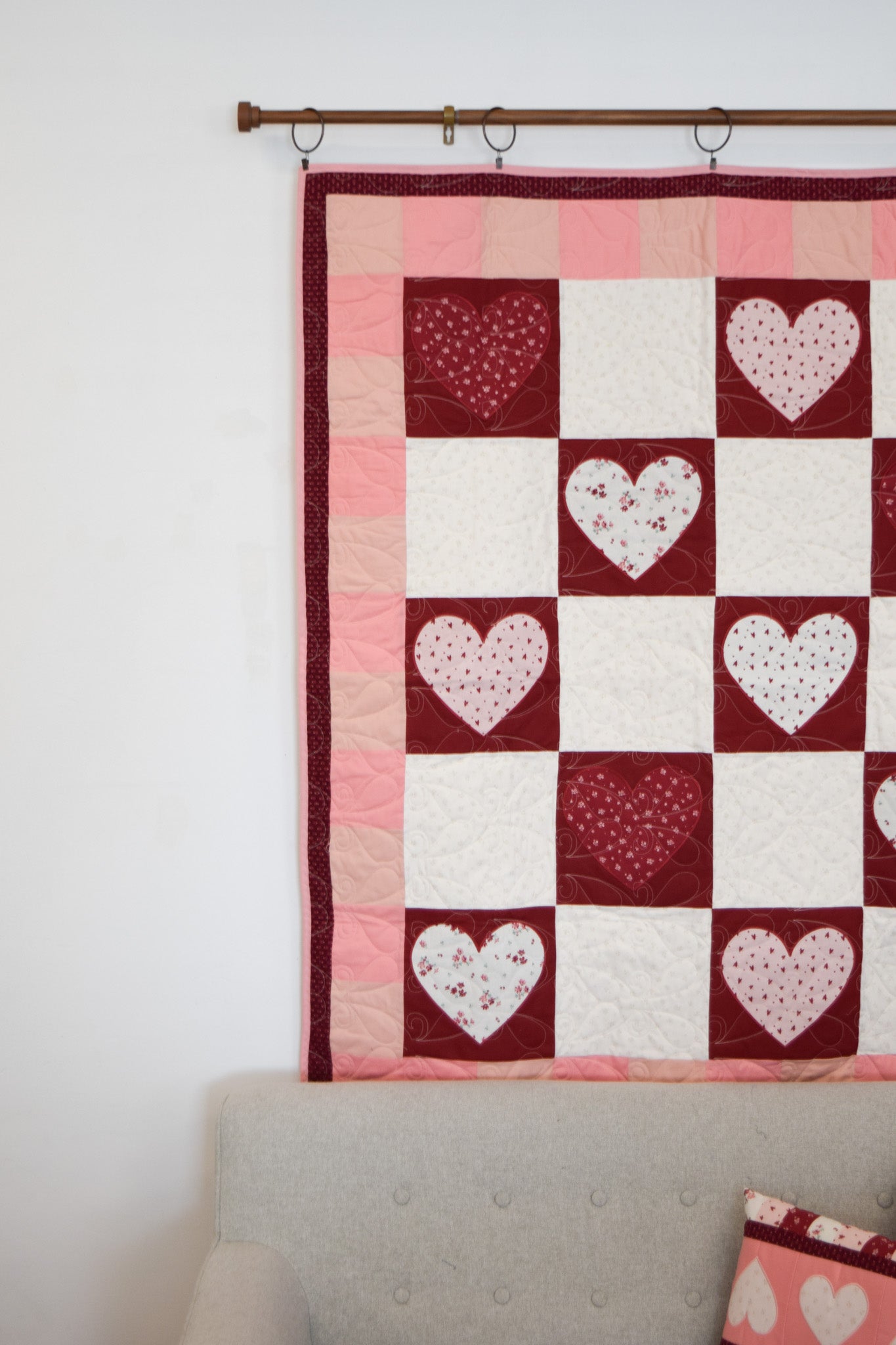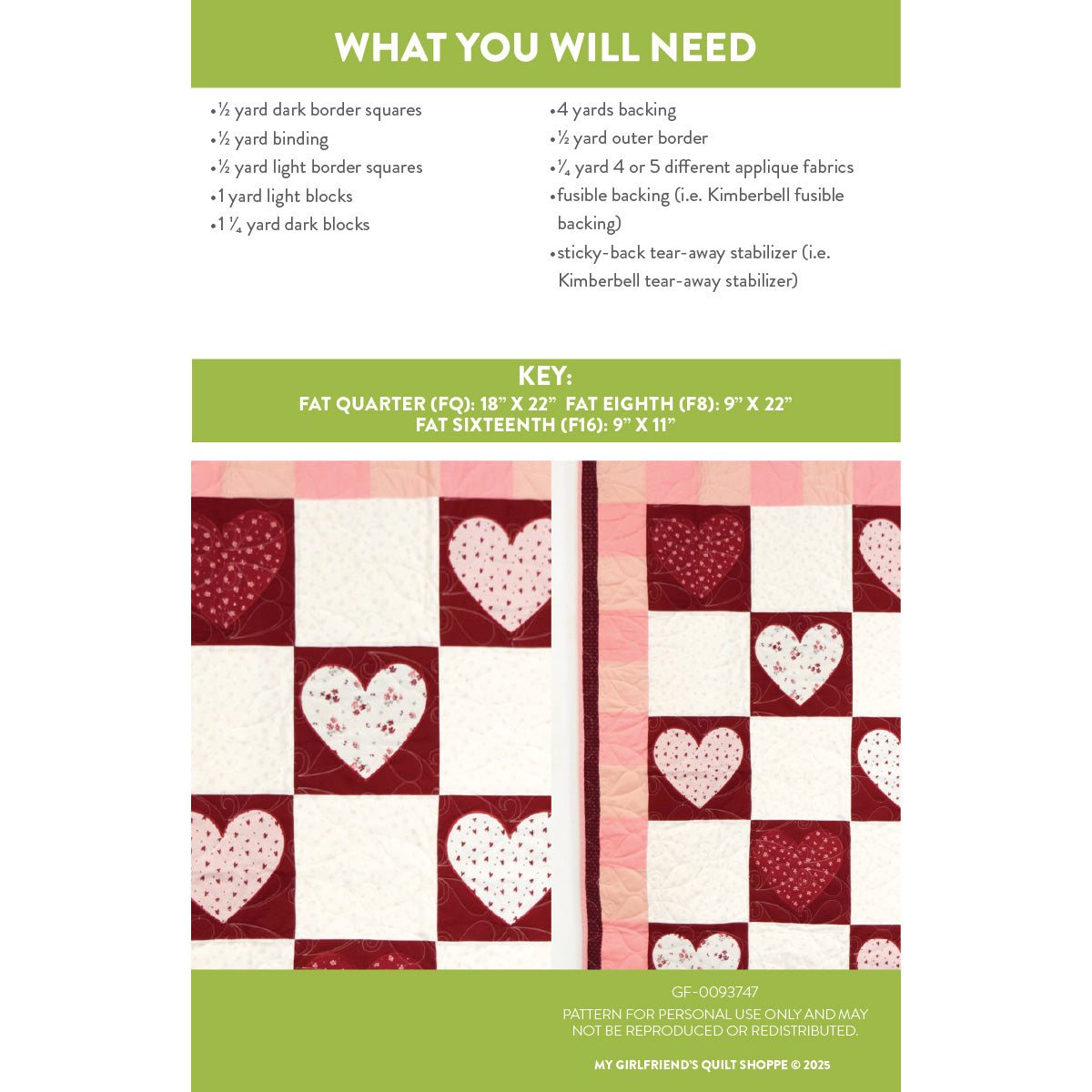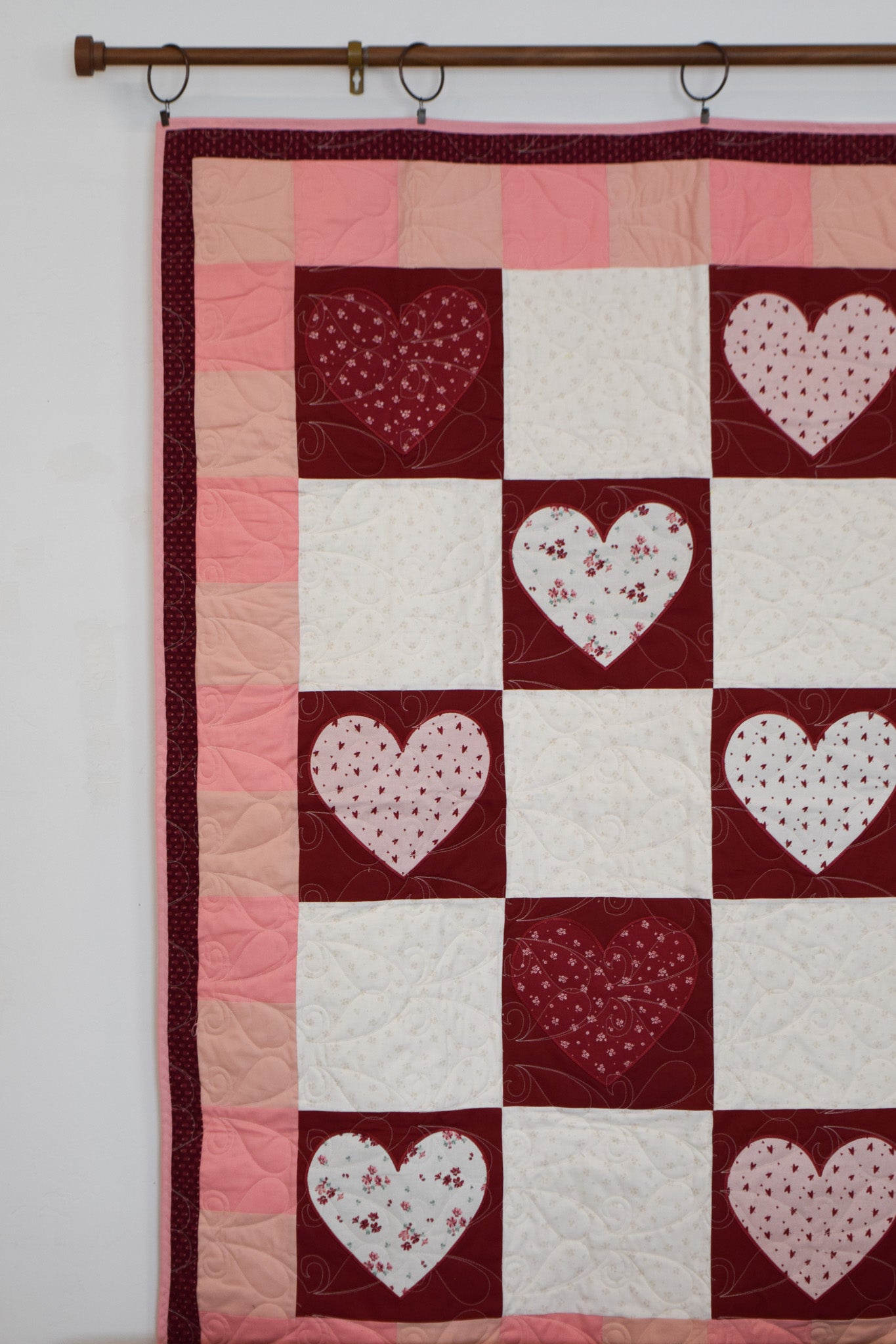 - Exclusive MGQS quilt design featuring heart-themed motifs