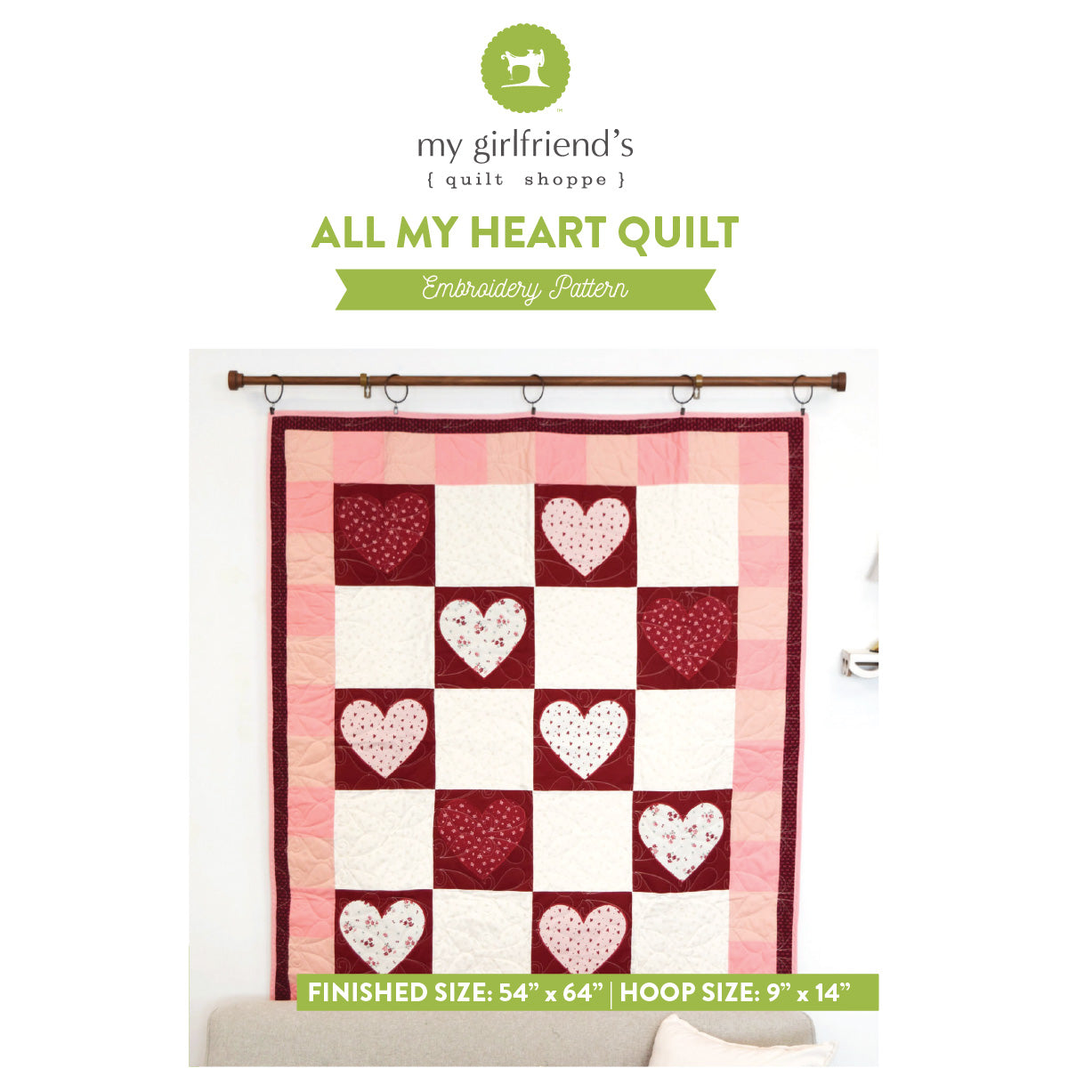 Create a quilt full of love with the All My Heart Quilt, a beautiful sewing and machine embroidery pattern from My Girlfriend’s Quilt Shoppe. Featuring heartfelt motifs and embroidered details, this quilt is designed to celebrate love, connection, and the joy of handmade stitching.