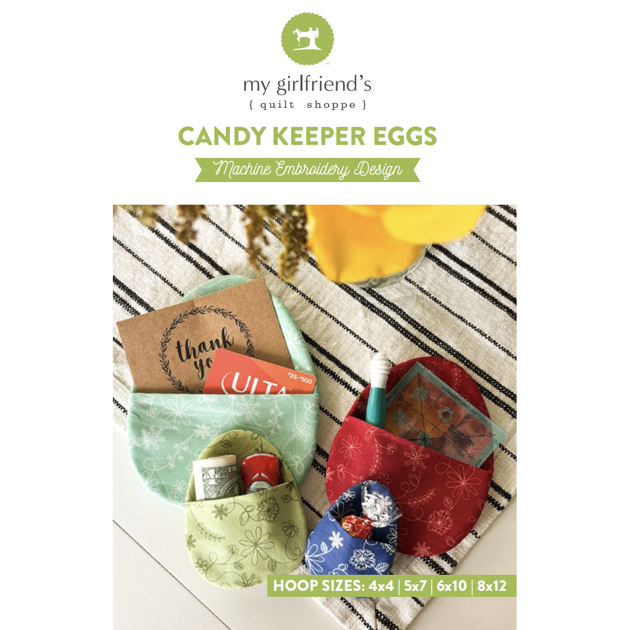 Add a sweet surprise to your spring crafting with Candy Keeper Eggs, a fun machine embroidery pattern from My Girlfriend’s Quilt Shoppe. These adorable egg-shaped pockets are perfect for holding small treats, gift cards, sewing notions, or tiny surprises—making them ideal for Easter baskets, party favors, and seasonal gifting.