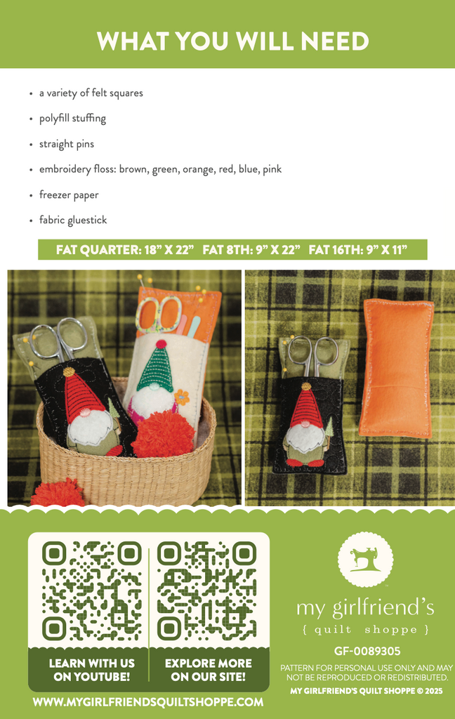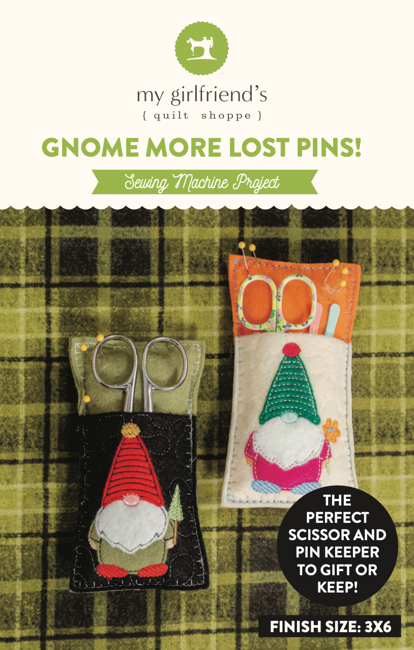 Keep your pins right where they belong—with a little help from an adorable gnome friend! The GNOME More Lost Pins! Pincushion Pattern from My Girlfriend’s Quilt Shoppe is a fun and functional sewing project perfect for your sewing room, retreat projects, gift-giving, or handmade swaps. With whimsical details and beginner-friendly construction, this pincushion is sure to bring a smile every time you sew.