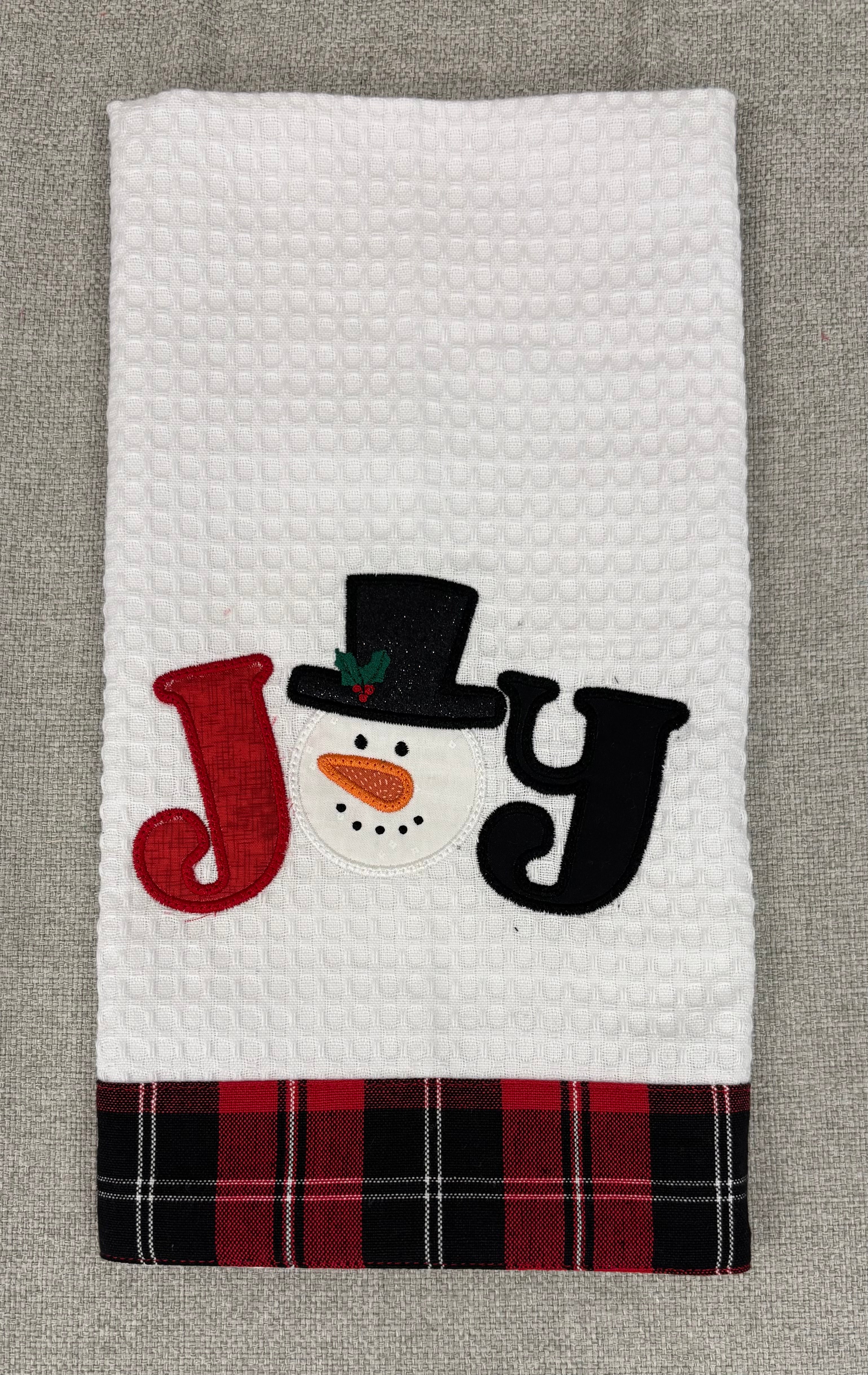 JOY Snowman Tea Towel Design (Downloadable Machine Embroidery Pattern)