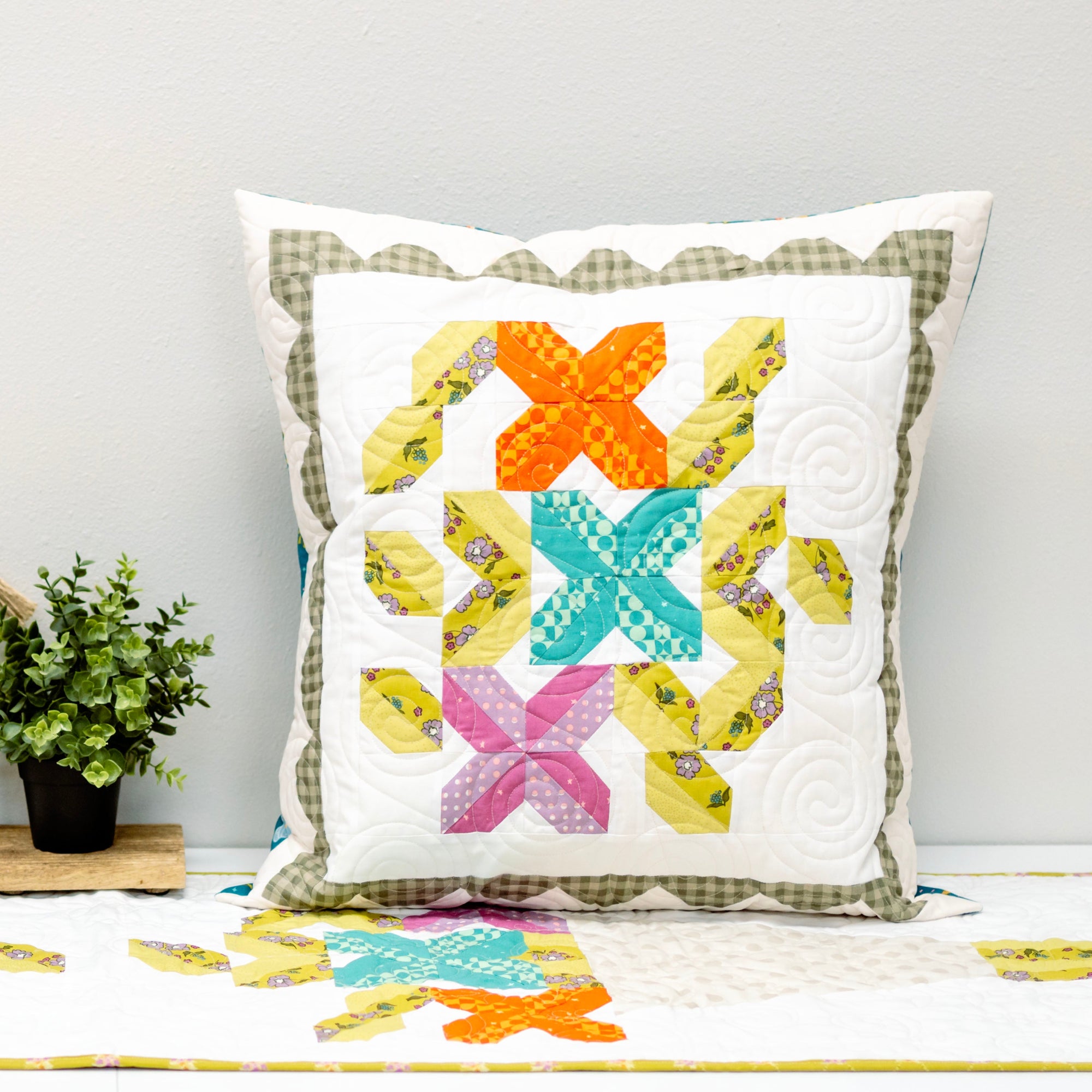 Bring the charm of a fresh flower stand into your home with the Flower Market Pillow, a cheerful sewing pattern from My Girlfriend’s Quilt Shoppe. Featuring colorful floral-inspired blocks arranged in a playful layout, this pillow captures the bright, happy feeling of strolling through a springtime flower market.