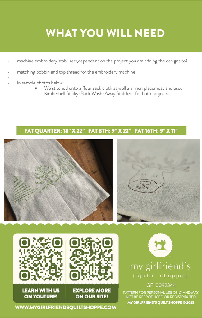 Exclusive downloadable machine embroidery pattern set by My Girlfriend’s Quilt Shoppe