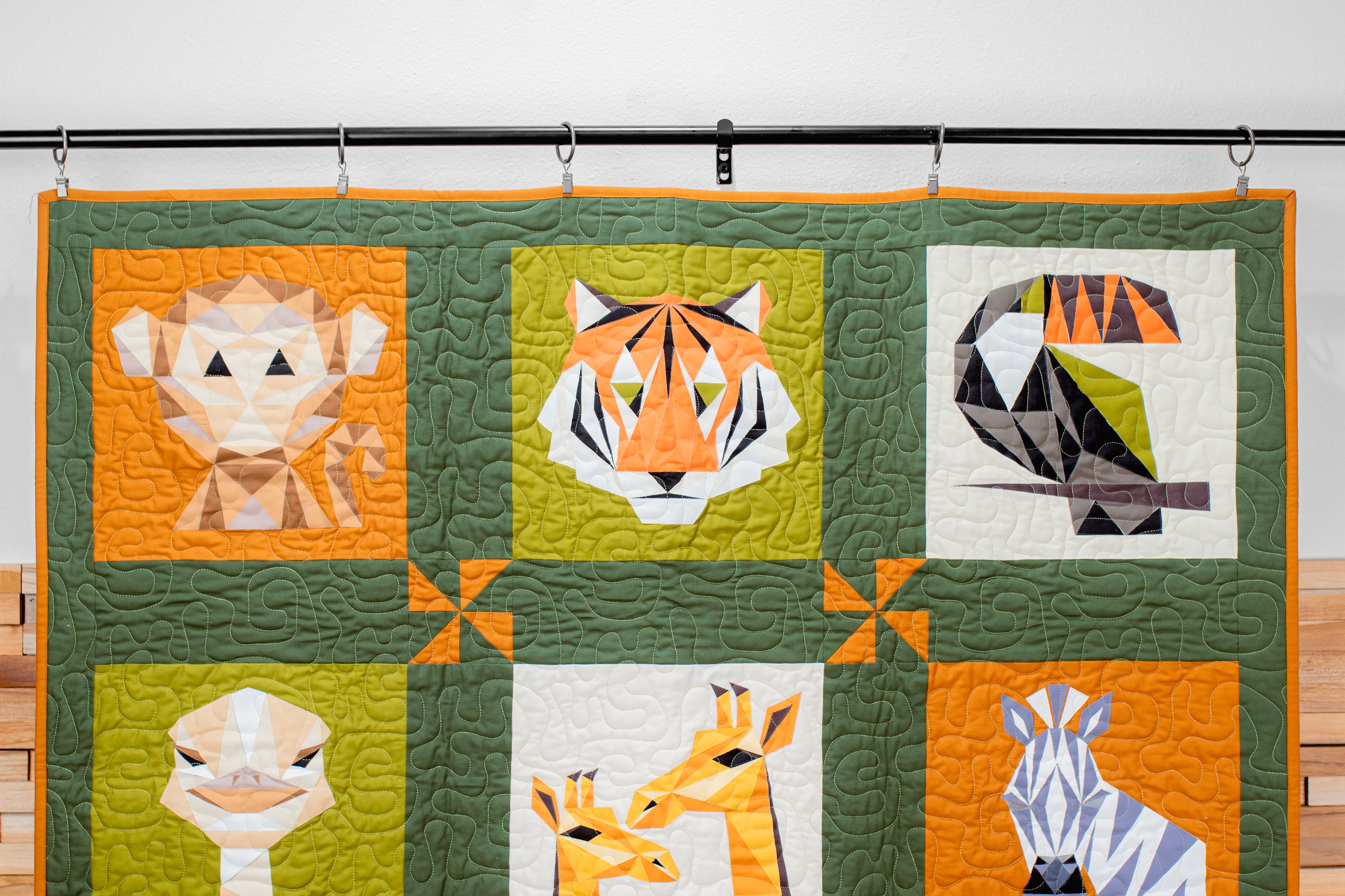 Description: Bring your wild quilt to life with the Roam Free Quilt Finishing Kit from My Girlfriend's Quilt Shoppe--designed perfectly to complement your favorite critters like Zara the Zebra, Leo the Lion, Tilly the Toucan and the whole jungle crew! This all-in-one kit includes everything you need to frame, sash and assemble your animal blocks into a quilt that is bursting with personality and precision.