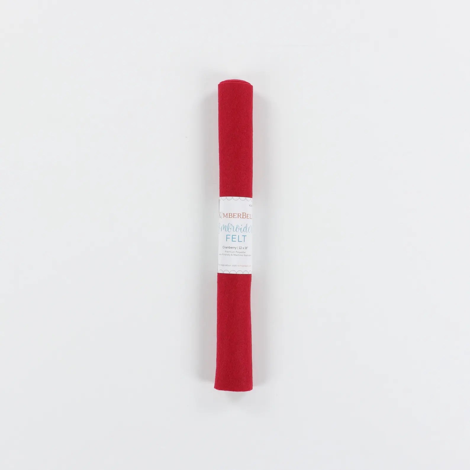 Add rich, festive color to your machine embroidery and crafting projects with Kimberbell Cranberry Embroidery Felt. This high-quality felt features a deep cranberry red—perfect for holiday designs, appliqué, ornaments, Kimberbell projects, and year-round embellishments that call for a warm pop of color.