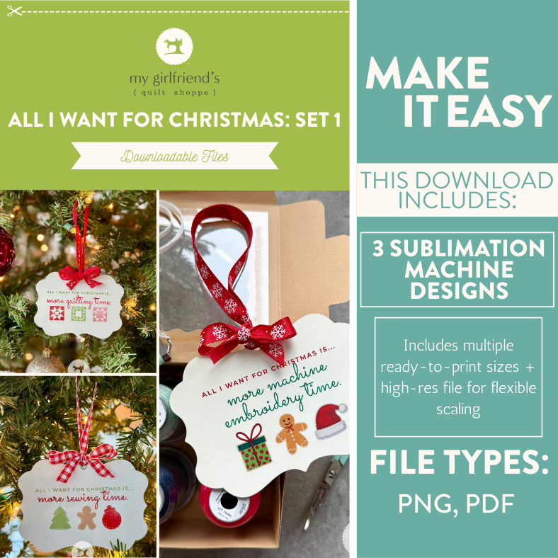 All your favorite holiday hobbies in one merry bundle! This “All I Want for Christmas” set includes three coordinating sublimation designs: