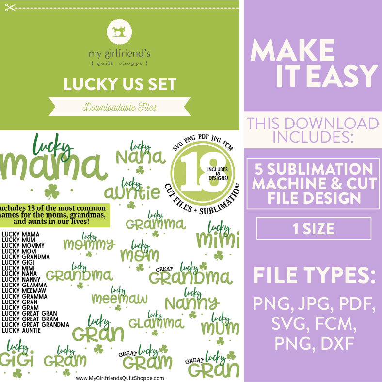 Lucky Us Set – 18 Mom, Grandma, & Aunt Name Designs
