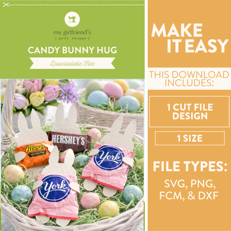 Wrap your sweet treats in something extra adorable with Candy Bunny Hug, a charming downloadable cut file from My Girlfriend’s Quilt Shoppe. This playful bunny design is created to “hug” a small candy or treat, making it perfect for Easter baskets, classroom exchanges, spring parties, and thoughtful seasonal surprises.