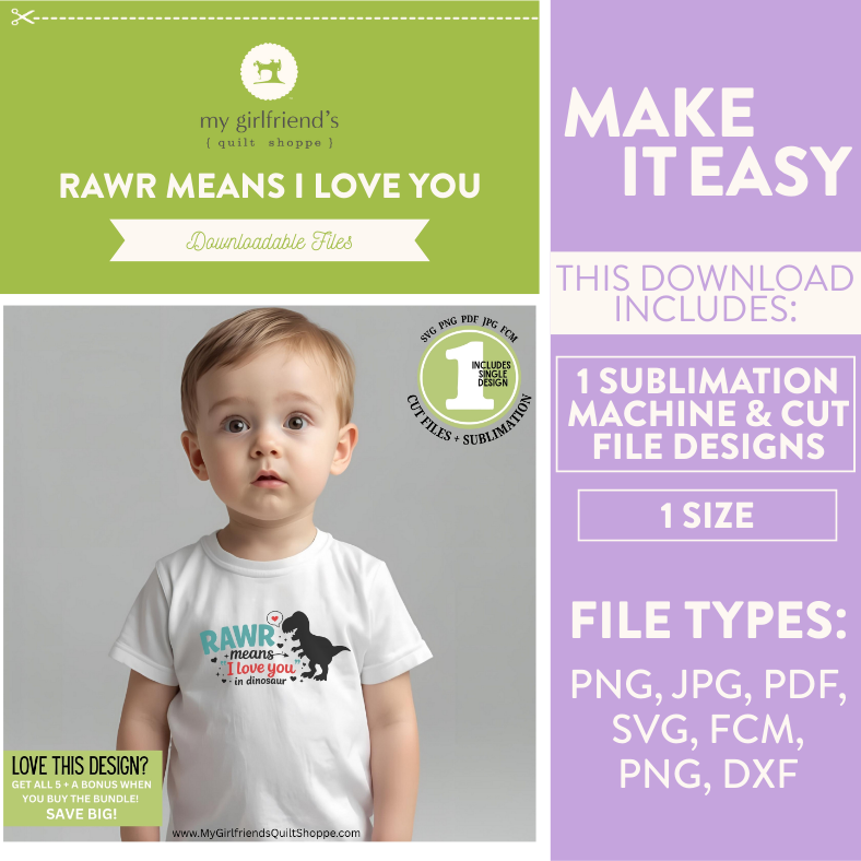 Rawr Means I Love You in Dinosaur (Downloadable Sublimation & Cut File Designs)