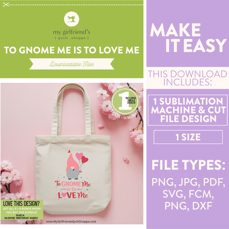 To Gnome Me is to Love Me (Downloadable Sublimation & Cut File Design)