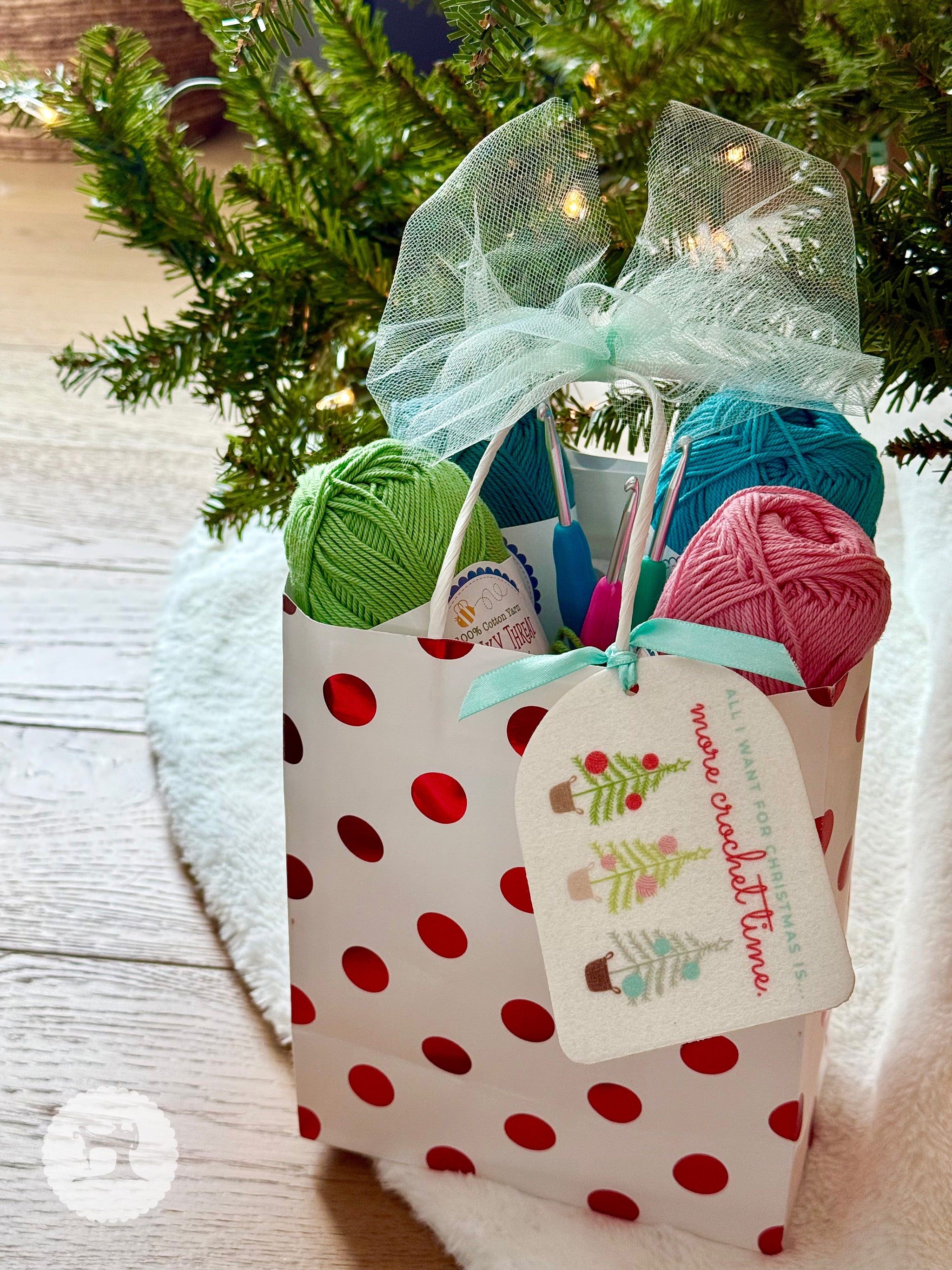 Each design features festive holiday motifs with a fiber-arts twist—perfect for anyone who dreams of sneaking in “just one more row” during the holidays.