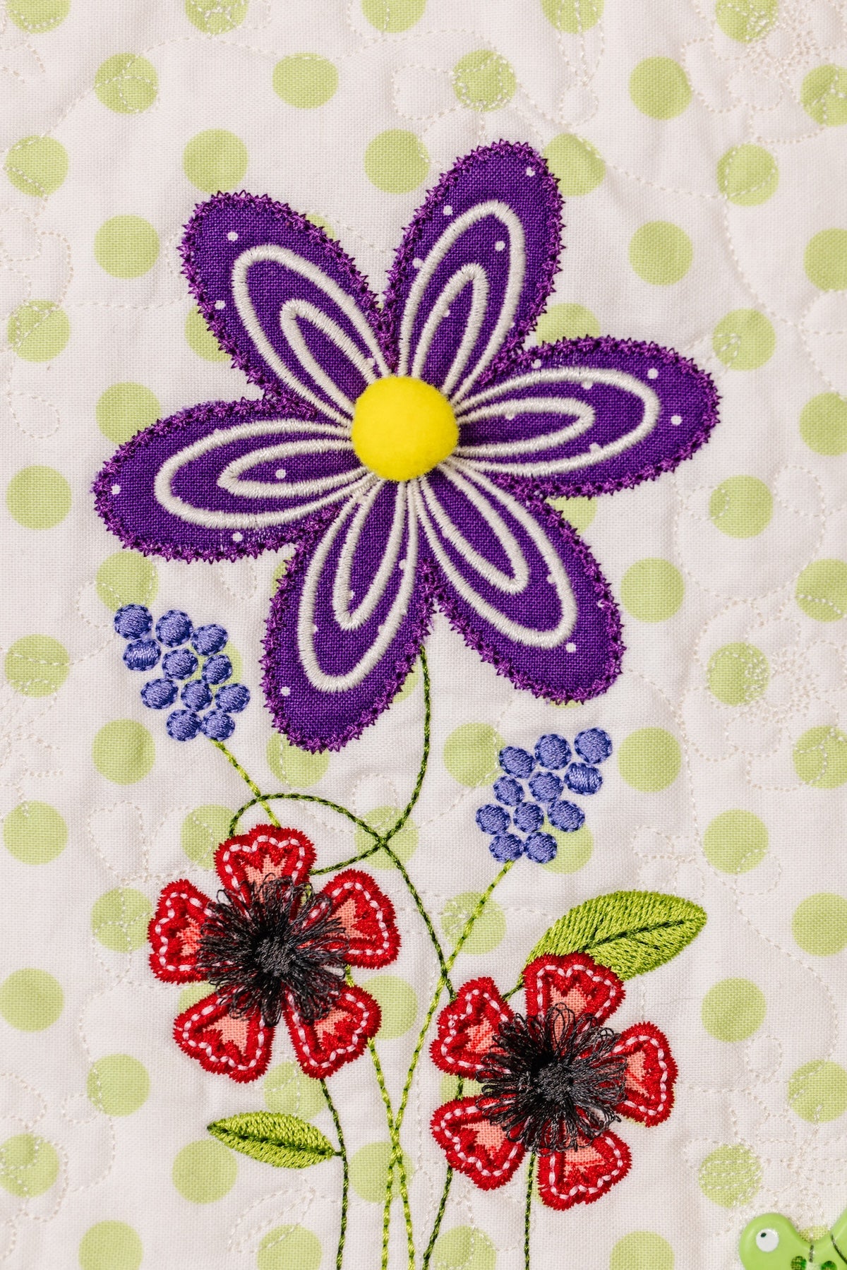 In 2025, rather than seeing all of the DDE projects upfront, you will create a 30 x 48” Mystery Wallflower Quilt. It's a mystery to us too! So together we will discover the designs along the way! All Digital Dealer Exclusives design blocks feature a variety of machine embroidery techniques and embellishments.
