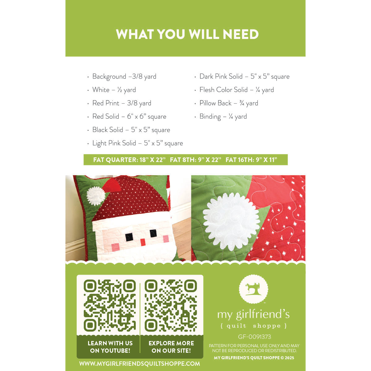 Bring festive cheer to your home with the Jolly St. Nick Pillow Pattern, an exclusive digital design from My Girlfriend’s Quilt Shoppe! This merry pillow features everyone’s favorite holiday icon—Santa Claus himself—complete with charming appliqué details and a touch of whimsy. Perfect for your couch, entryway bench, or sewing room, it’s a fun and festive project to sew for the season.