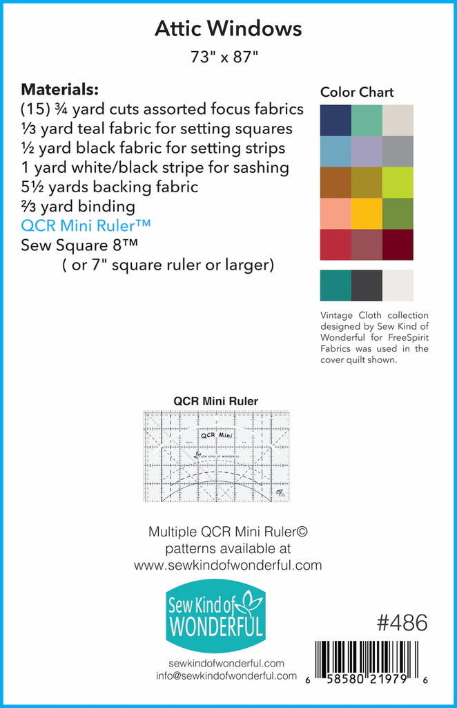Description: Bring depth and light to your quilting with the Attic Windows Pattern by Sew Kind of Wonderful. This stunning design reimagines the classic windowpane block with smooth, modern curves using the Wonder Curve Ruler. The result? A quilt that feels open, airy, and full of movement--like sunlight streaming through your favorite window. Perfect for showcasing beautiful prints, gradients, or scenic panels.
