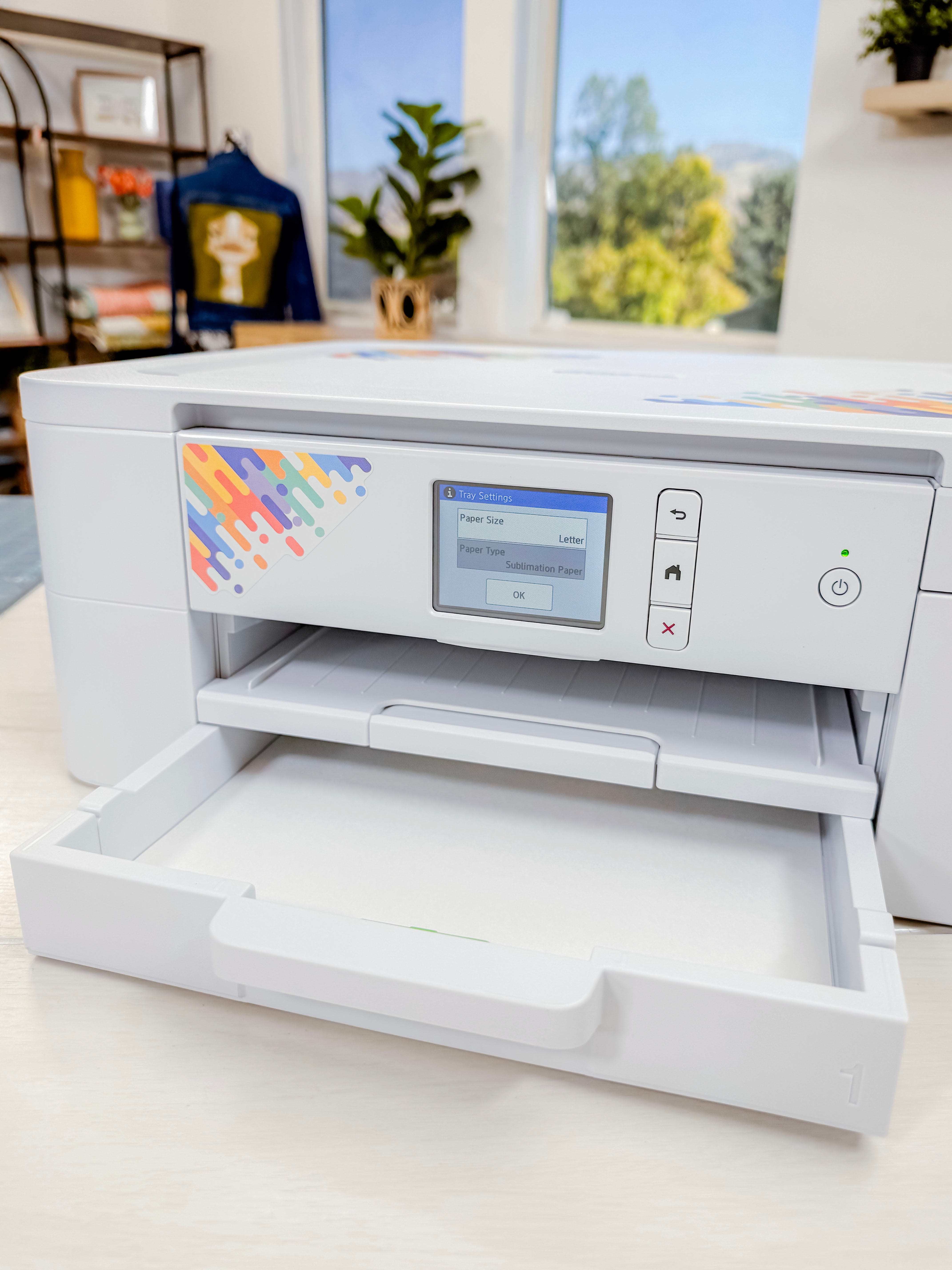 Unleash your inner bold and bloom-tiful creativity with the Brother Sublimation Printer. The Brother Sublimation Printer is ideal for any maker, artist, or designer as it allows you to create vibrant color projects such as tee shirts, tote bags, ceramic mugs, metal tumblers, coasters and more using Artspira¹, Brother’s editing and design app. Once you design in Artspira¹, you can quickly transfer your creations to your Brother Sublimation Printer and print high-quality, vibrant color designs. Heat press required-additional purchase necessary.