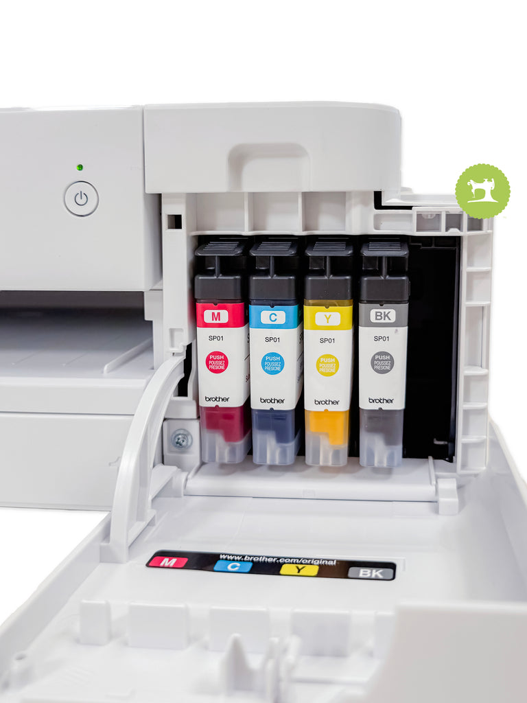 - Get started right out of the box The Brother Sublimation Printer includes a full-size set of Brother Genuine Ink cartridges (CMYK), with each one being a 47 ML cartridge (Black Sublimation Ink/SP01BKS, Yellow Sublimation Ink/SP01YS, Magenta Sublimation Ink/SP01MS, Cyan Sublimation Ink/SP01CS), and a couple of sheets of Sublimation Paper (SP01PLS) to get you started. Brother Genuine Ink is specifically engineered and tested to perform to high standards, helping deliver virtually smudge and smear-free printing while extending the life of your print head.