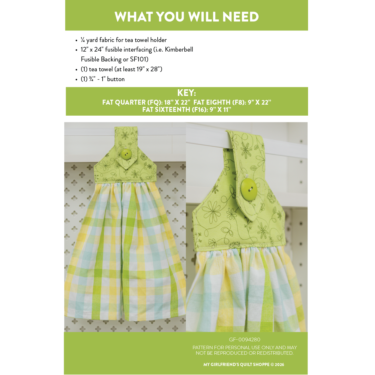 Add both function and charm to your kitchen with the Hanging Tea Towel sewing pattern from My Girlfriend’s Quilt Shoppe. Designed to button securely over an oven handle or cabinet pull, this practical project keeps your towel right where you need it—no more slipping to the floor.