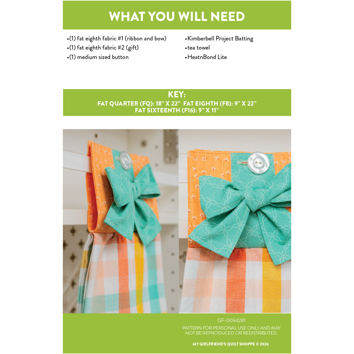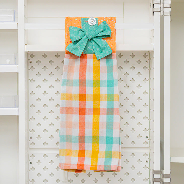Add a fresh pop of color and functionality to your kitchen with the Wrap It Up Tea Towel, a stylish sewing pattern from My Girlfriend’s Quilt Shoppe. Designed to wrap securely around an oven handle or bar, this clever towel holder stays in place while adding a polished decorative accent.