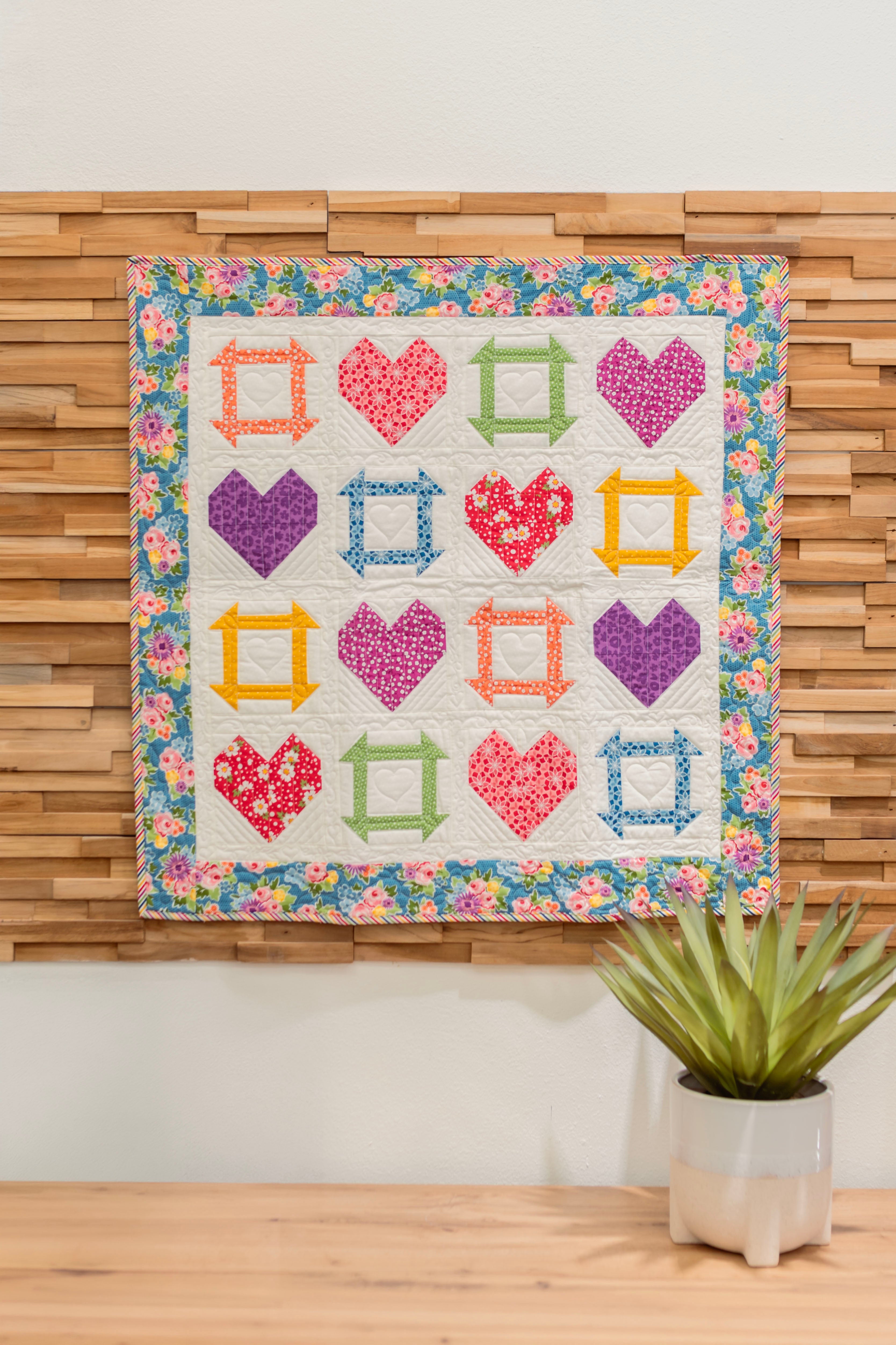 Create a charming wall hanging with our Churning Hearts pattern. This downloadable pattern features a unique combination of the traditional churn dash and heart quilt designs. Bring love and warmth to any room in your home with this delightful project.