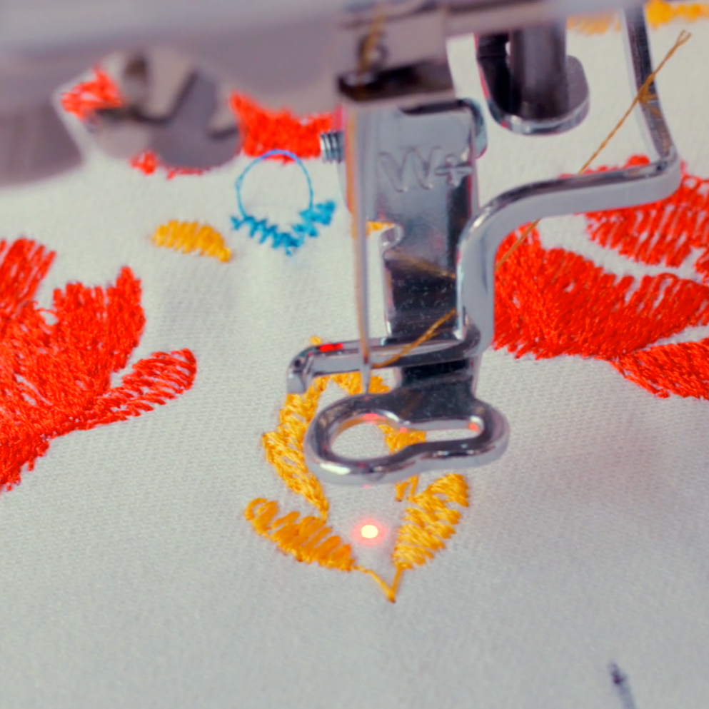 Perfectly place and align your embroidery with 2-point laser positioning and built-in LED pointers.