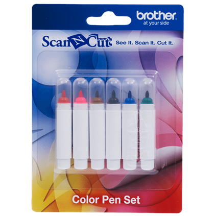 This set includes six craft color pens with permanent ink, for drawing and tracing on paper. For use with ScanNCut Pen Holder (not included). Always keep cap on when not in use.