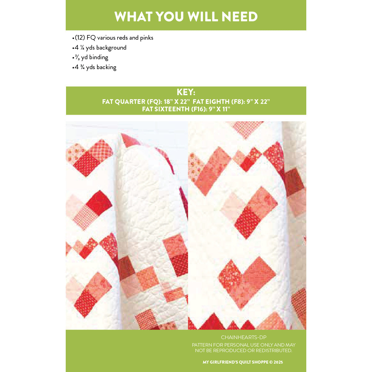 Spread the love with our Chain Of Hearts quilt pattern. This downloadable pattern guides you through crafting a beautiful and intricate design that is perfect for showcasing your love and creativity. Start stitching today and create a heartfelt masterpiece.