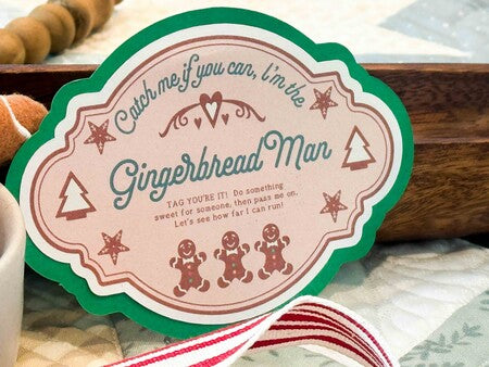 Includes the “Catch me if you can, I’m the Gingerbread Man” graphic tag