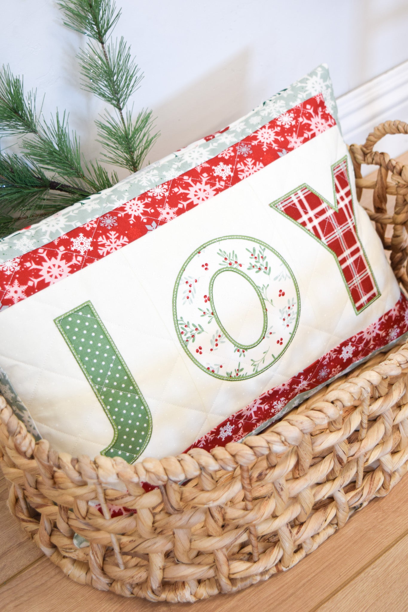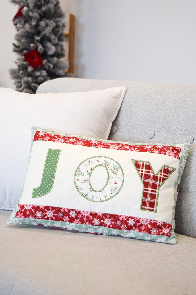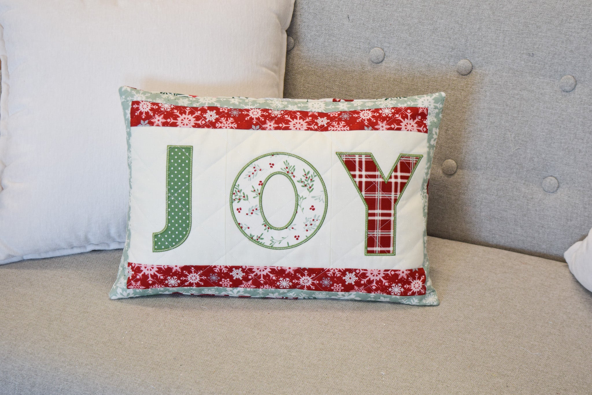 Bring comfort and cheer to your holiday home with the Joy Lumbar Pillow—a stylish and festive machine embroidery project that makes a bold, joyful statement!
