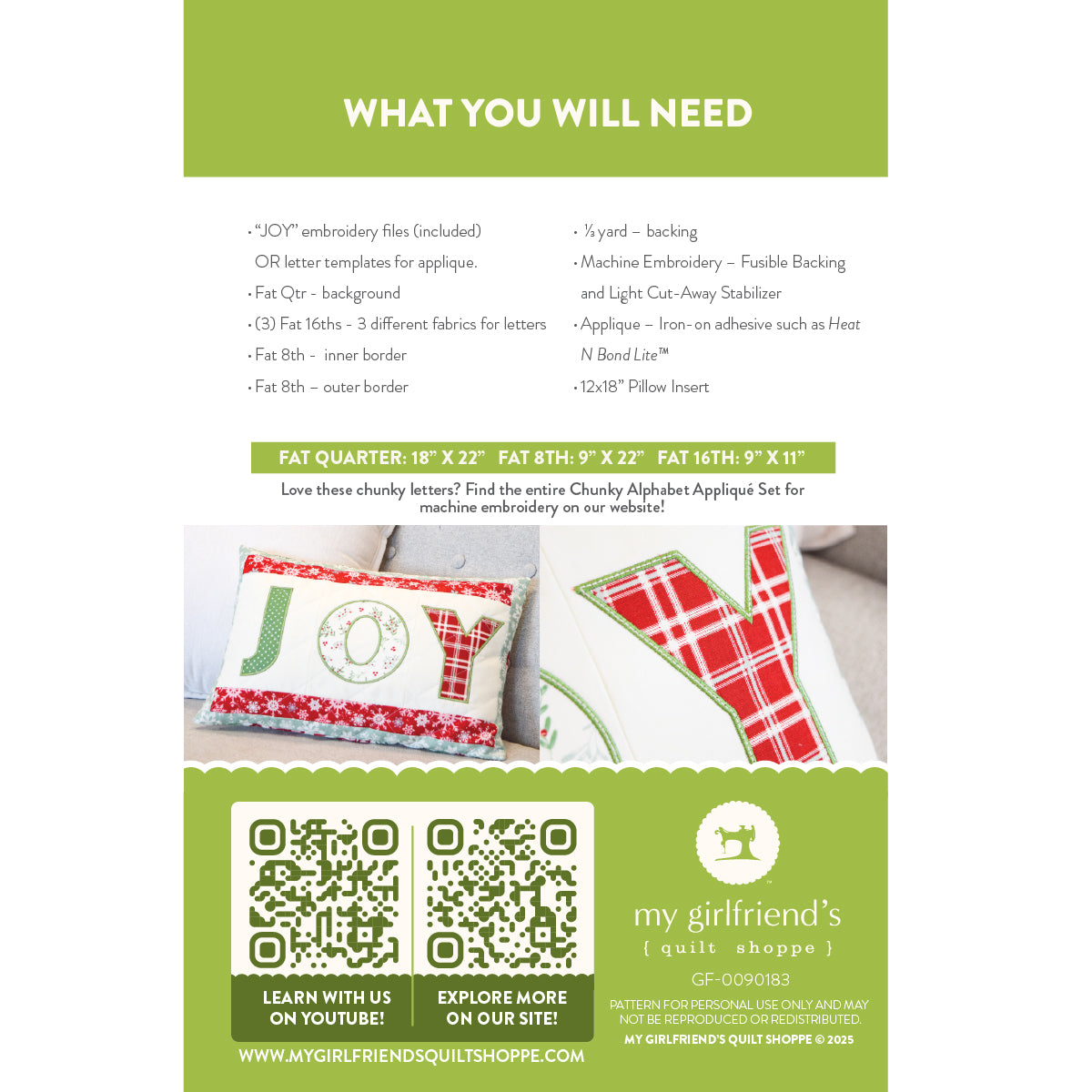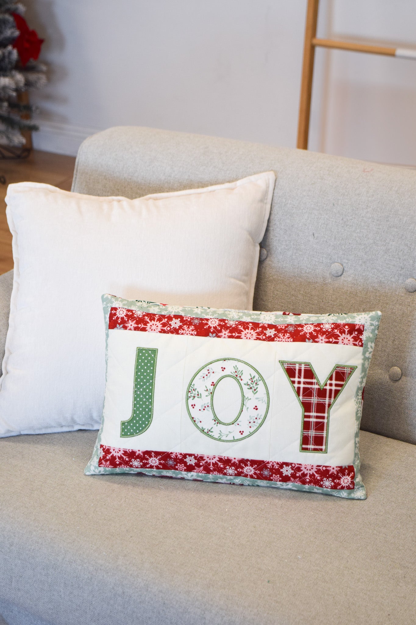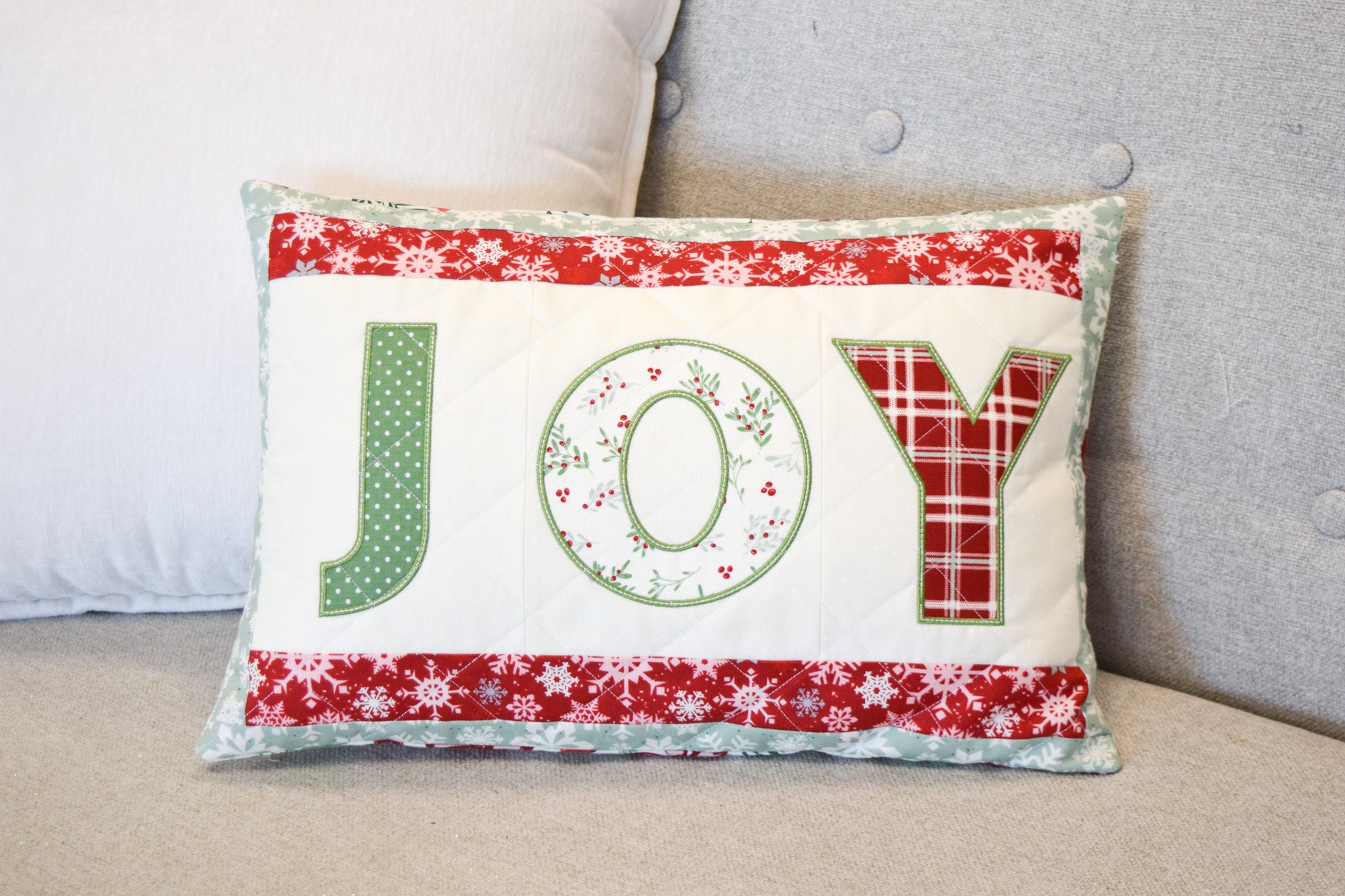 Bring comfort and cheer to your holiday home with the Joy Lumbar Pillow—a stylish and festive machine embroidery project that makes a bold, joyful statement!