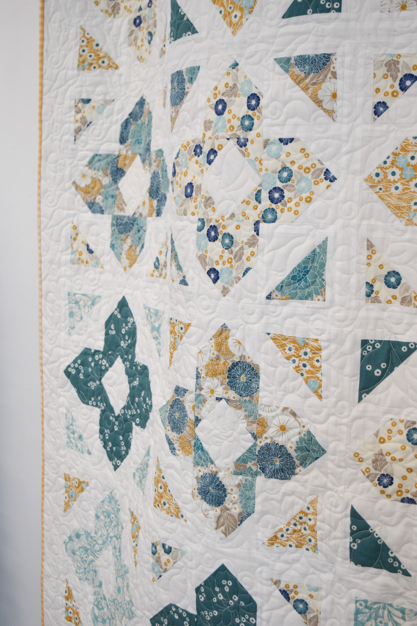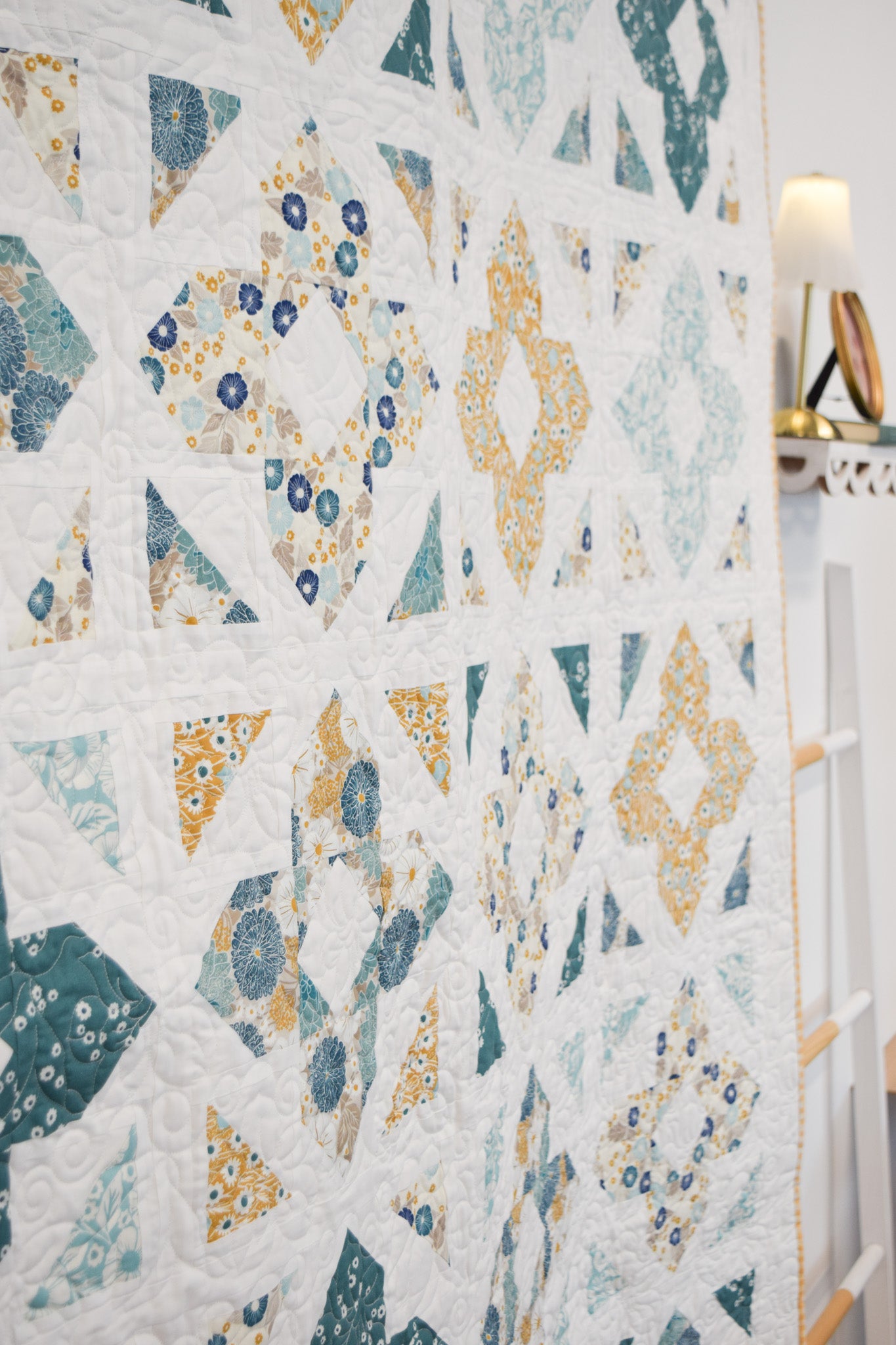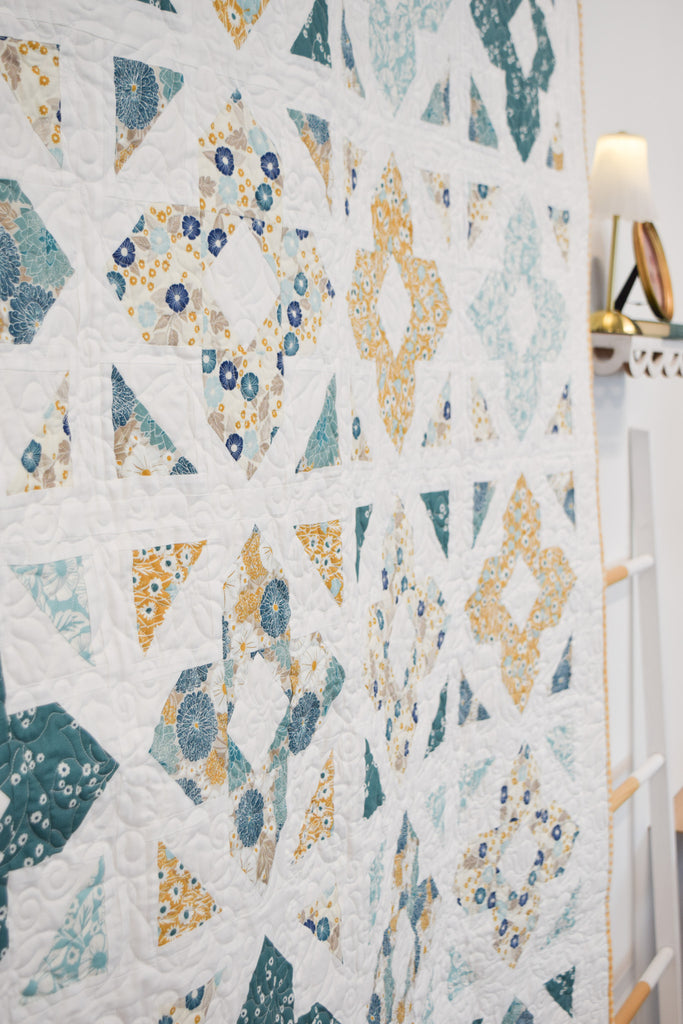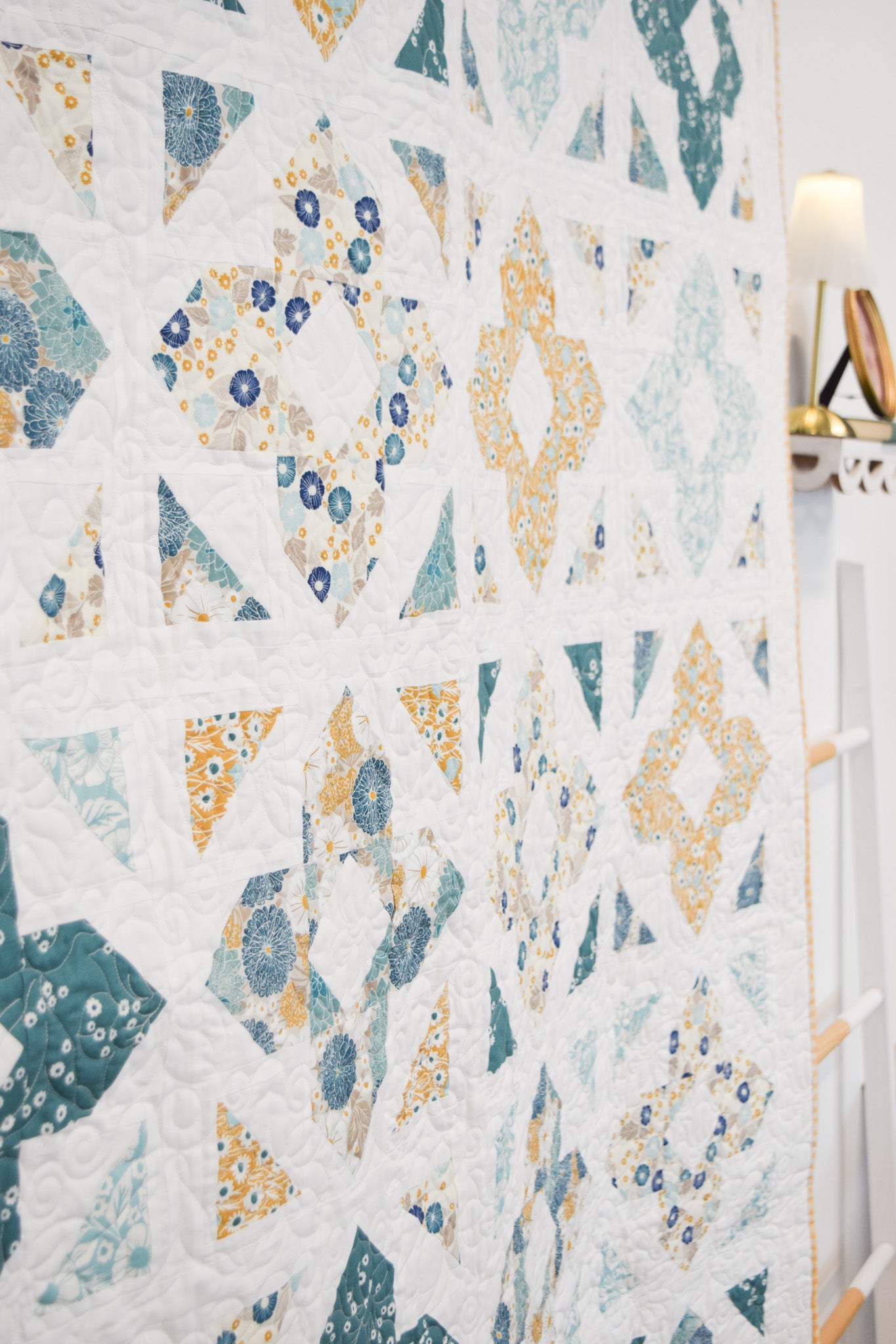 Description: Light up your quilting with Luminaries Quilt Kit designed by Cotton and Joy! This modern star kissed design radiates warmth and elegance with its bold geometric layout and clean lines. Perfect for showcasing your favorite prints or solids, Luminaries brings a fresh, contemporary vibe to your quilting lineup--whether you are making a cozy throw or a striking wall display.