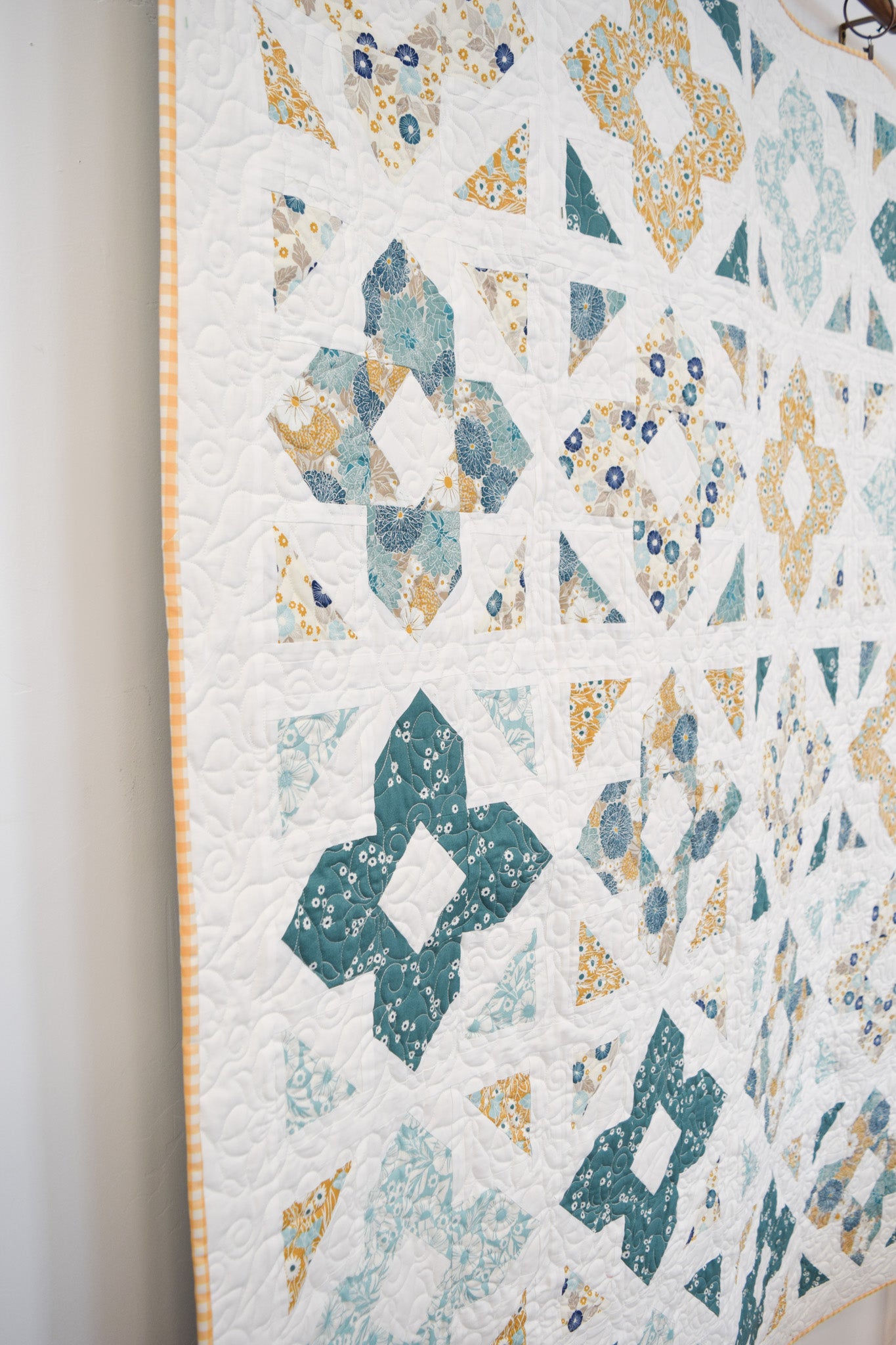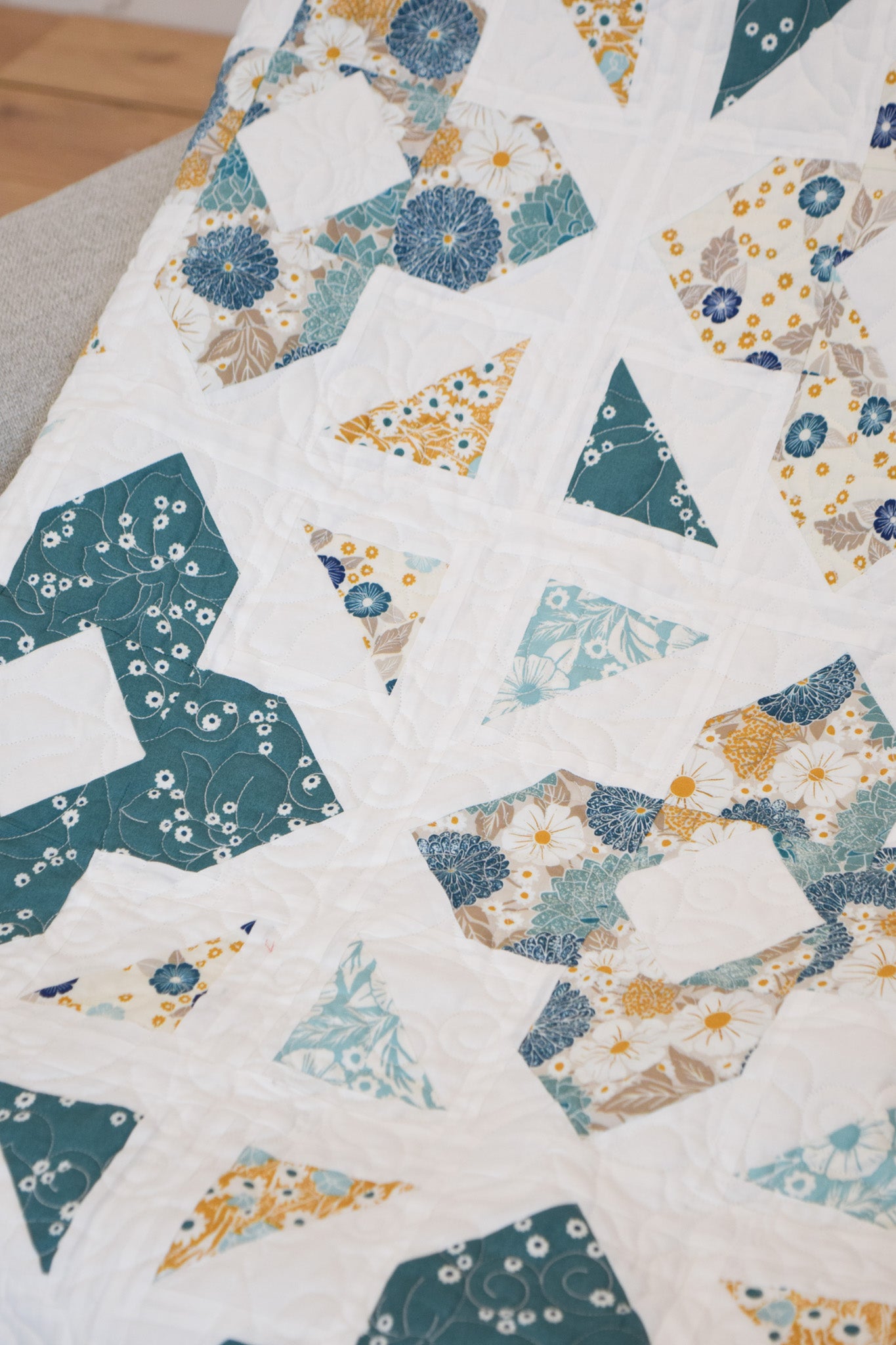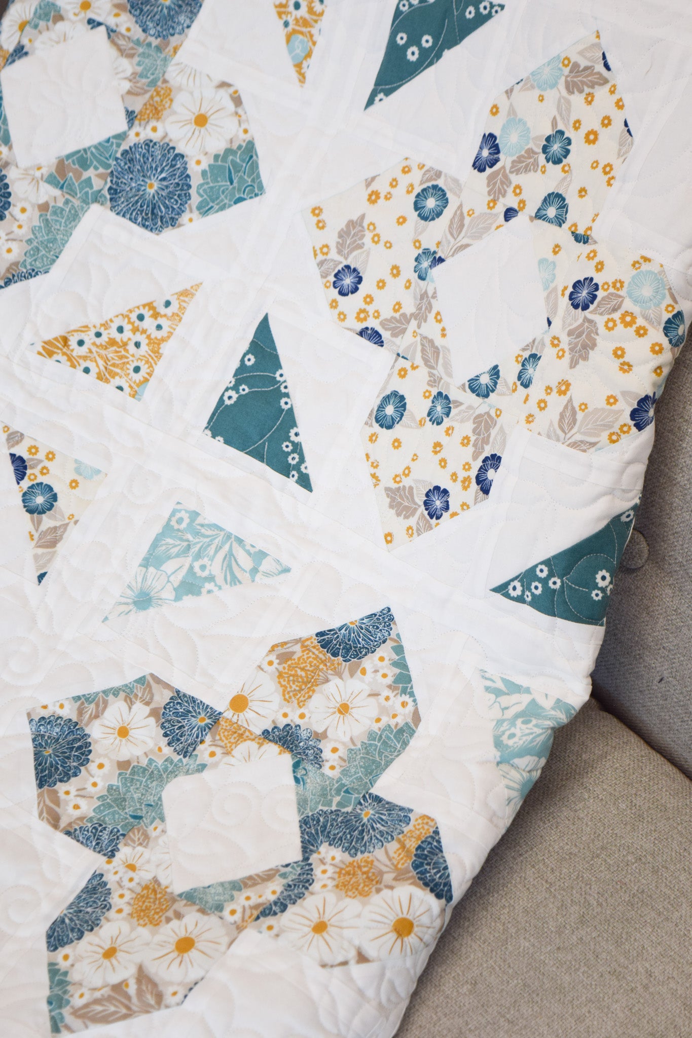 Description: Light up your quilting with Luminaries Quilt Kit designed by Cotton and Joy! This modern star kissed design radiates warmth and elegance with its bold geometric layout and clean lines. Perfect for showcasing your favorite prints or solids, Luminaries brings a fresh, contemporary vibe to your quilting lineup--whether you are making a cozy throw or a striking wall display.
