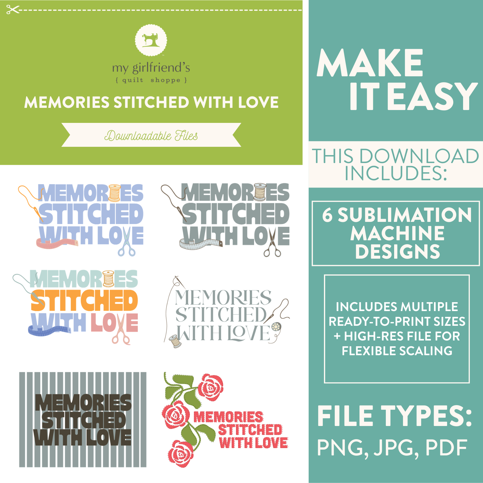 Instant digital download—start creating with Memories Stitched with Love today!