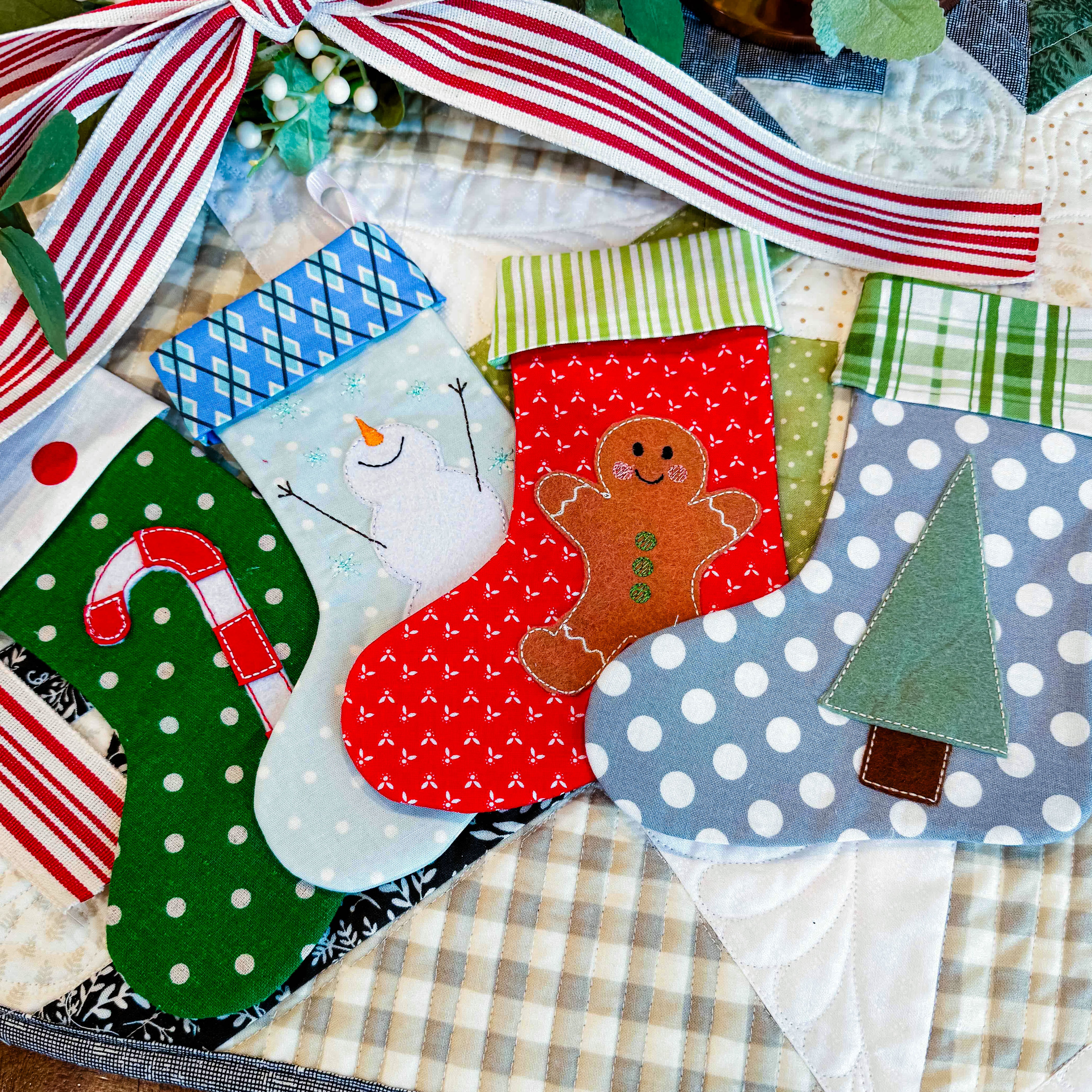 Merry Quick Stitch Stockings (Downloadable Machine Embroidery Pattern)