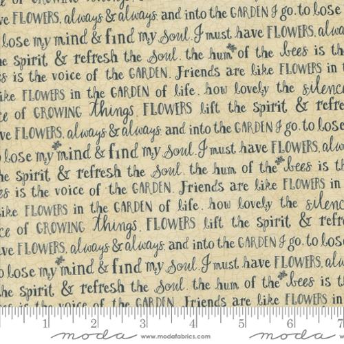 Moda - Bloom And Grow Text and Words, Linen 1 Yard Cut