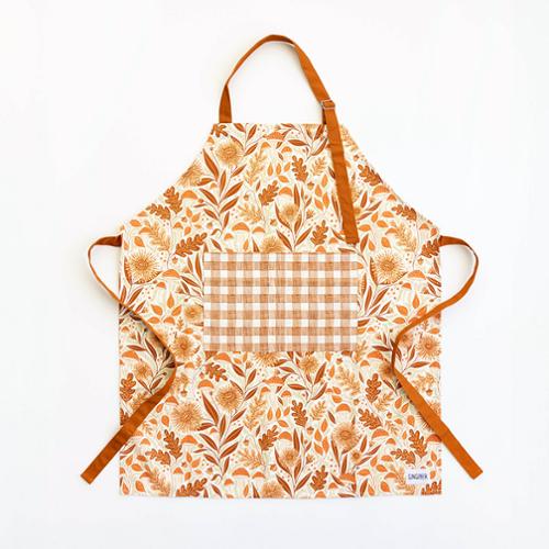 Description: Spice up your cooking style with the Mushroom Medley Apron by Gingiber! Featuring an enchanting array of illustrated mushrooms in earthy modern tones, this apron brings a dash of woodland whimsy to your kitchen adventures. Designed with Gingiber's signature charm, this apron is both functional and fashionable--perfect for baking, hosting, gardening, sewing, or simply looking fabulous while doing the dishes.