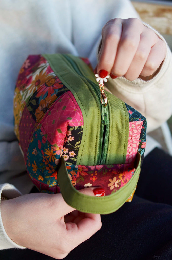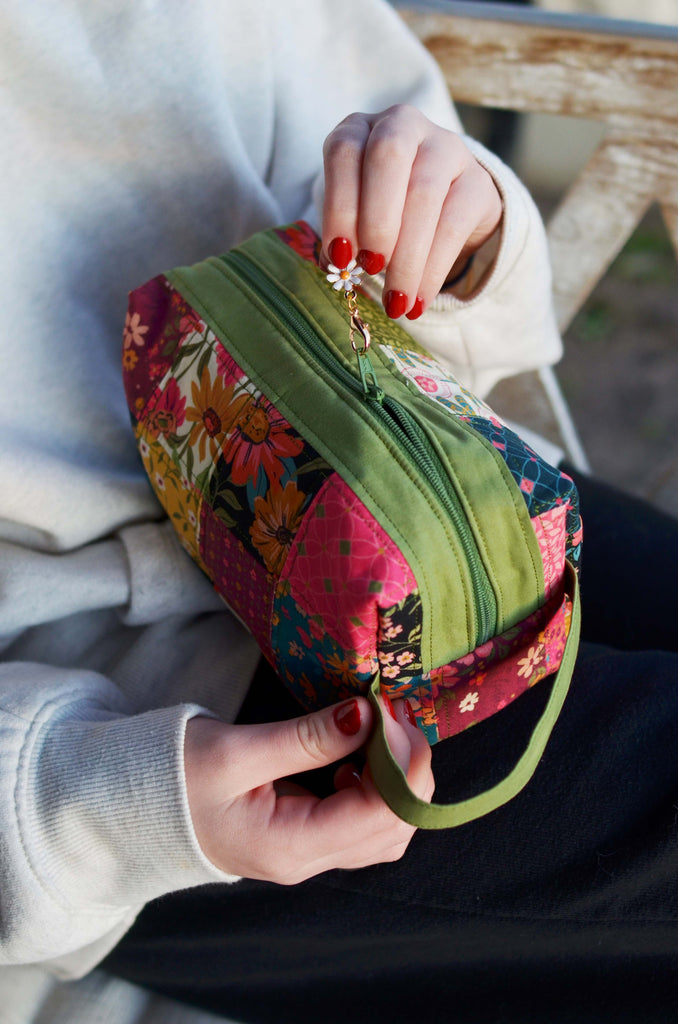 Ideal for storing sewing notions, cosmetics, chargers, or on-the-go essentials, this compact pouch is both cute and practical. Each pouch showcases a unique mix of high-quality cotton fabrics, making every piece one-of-a-kind.
