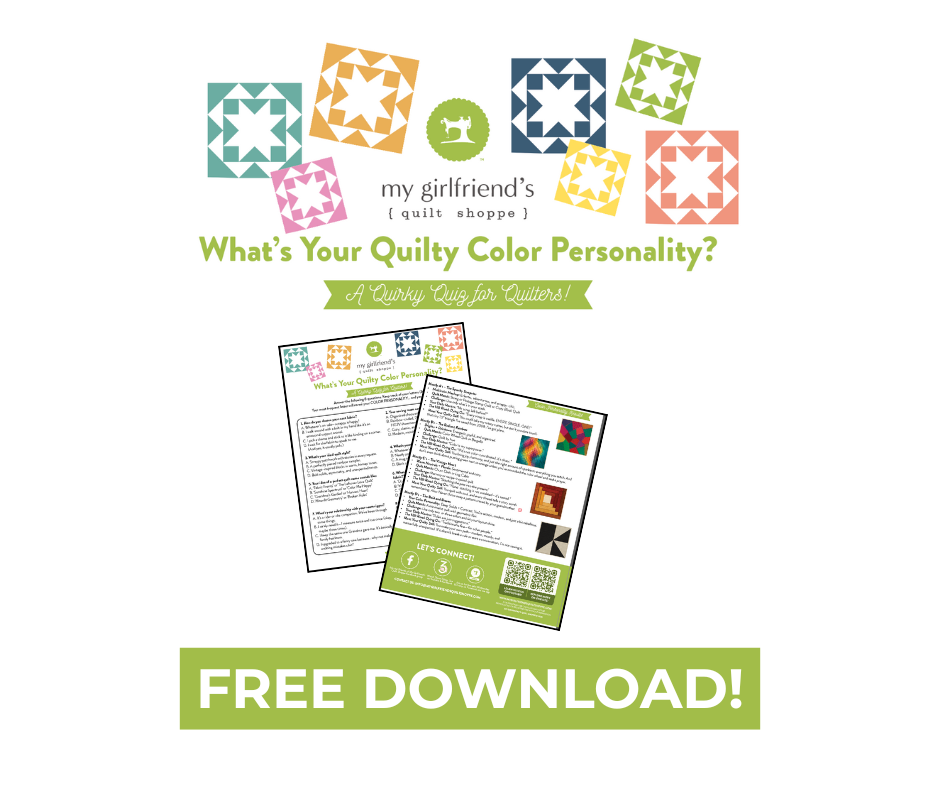 Description: Discover Your Inner Quilty Spirit! Ready to stitch up some fun? Take our FREE Quilty Personality Quiz, developed by the fabric-fabulous minds at My Girlfriend's Quilt Shoppe! Whether you are a scrappy rebel, a precision piecer, or the queen of UFO's, this playful quiz reveals your true quilting alter ego--no seam ripper required.