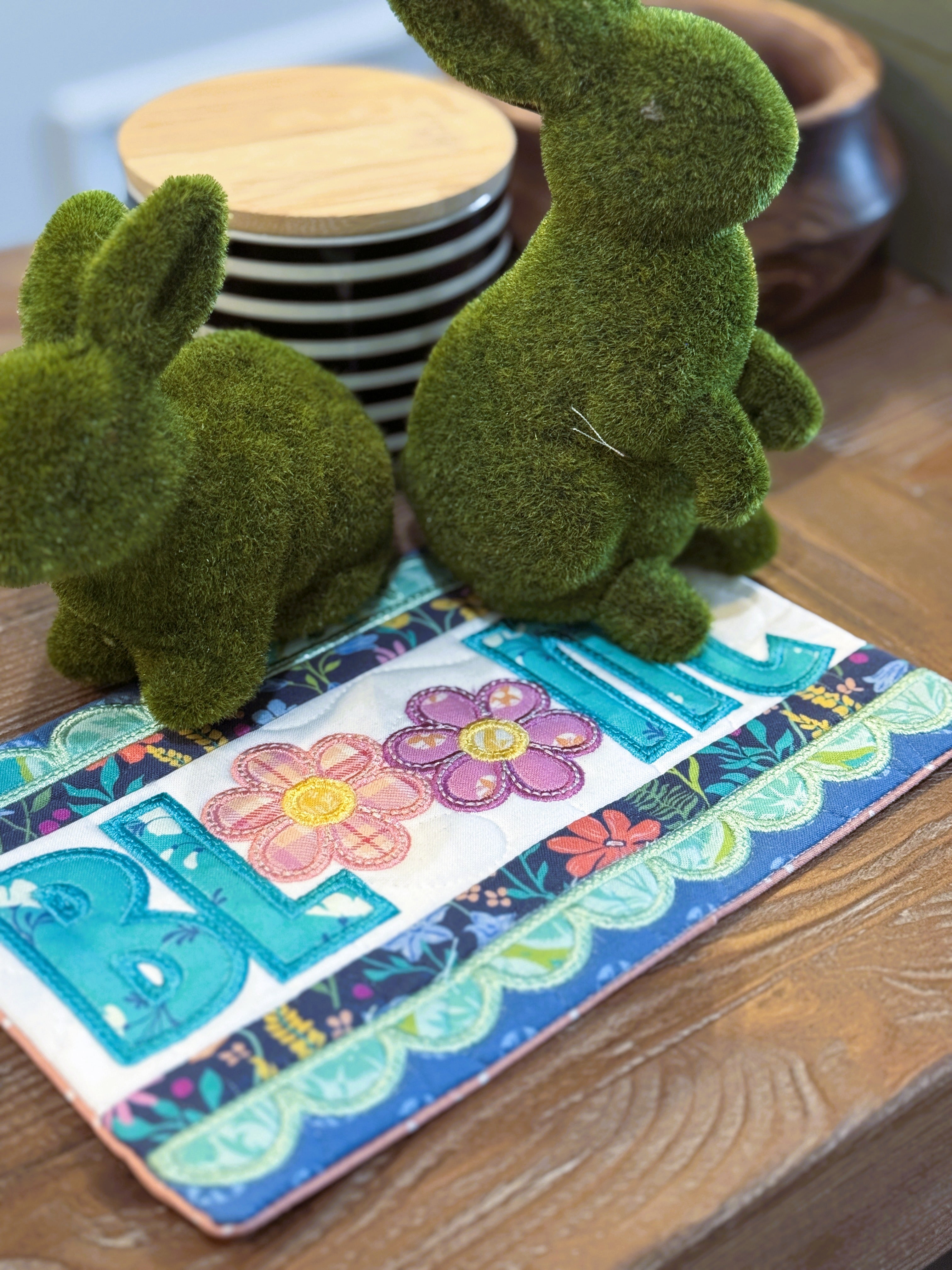 Perfect for welcoming spring or brightening your home year-round, this mini table runner makes a wonderful centerpiece for dining tables, entry tables, buffets, or seasonal displays. The combination of simple sewing techniques and machine embroidery details creates a polished, professional finish while still being approachable for confident beginners.